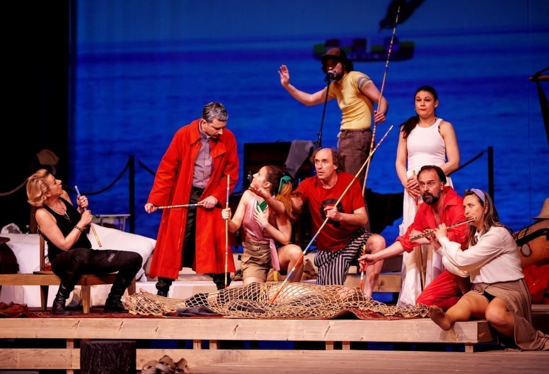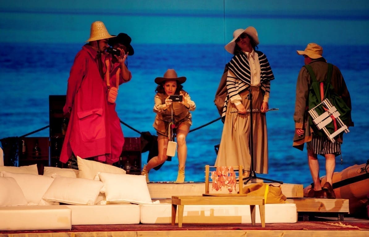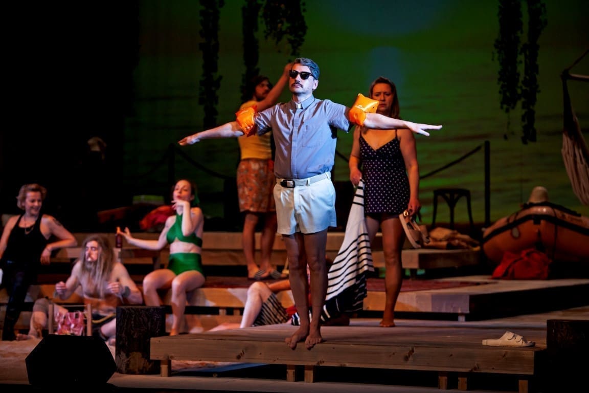 U tekstu Tene Štivičić i režiji i glazbi Marjana Nečaka na pustom se otoku nađe kapitalistički orijentirana turistička vodička (Barbara Cerar), sedam turista željnih mira – neobični svećenik Franz (Saša Tabaković), agentica za zaštitu ljudskih prava (Iva Babić), psihijatrica Michelle (Pia Zemljič), njezin suprug Michel, psiholog i budist (Uroš Fürst), arheolog Sir Oliver Ritual (Benjamin Krnetić), pedijatrica Polona (Nina Valič), pjesnik Zoran Udav (Janez Škof) i – jedan Divljak koji će biti nazvan Rudi (Klemen Janežić).