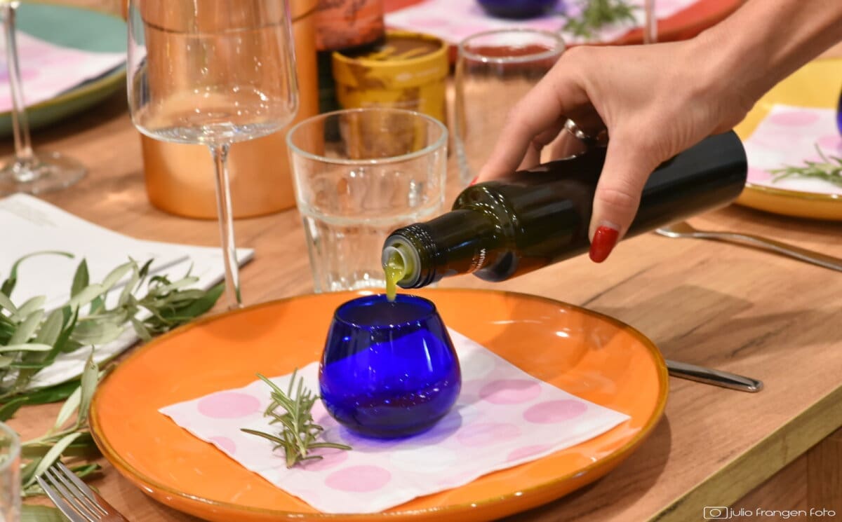 Prvi korak ove večeri pod nazivom “Petkom dame biraju” bio je kušanje ulja prema pravilima struke (iz neprozirnih plavih čašica), saznalo se koje karakteristike mora imati ekstradjevičansko ulje – voćnost, gorčinu, pikantnost – da bi nosilo taj naziv. Govorilo se i o certificiranom ekološkom uzgoju biljaka te kako izgleda gdinjski vrt Fjori Fôra i koje sve blagodati možemo imati od mediteranskih “trava”.