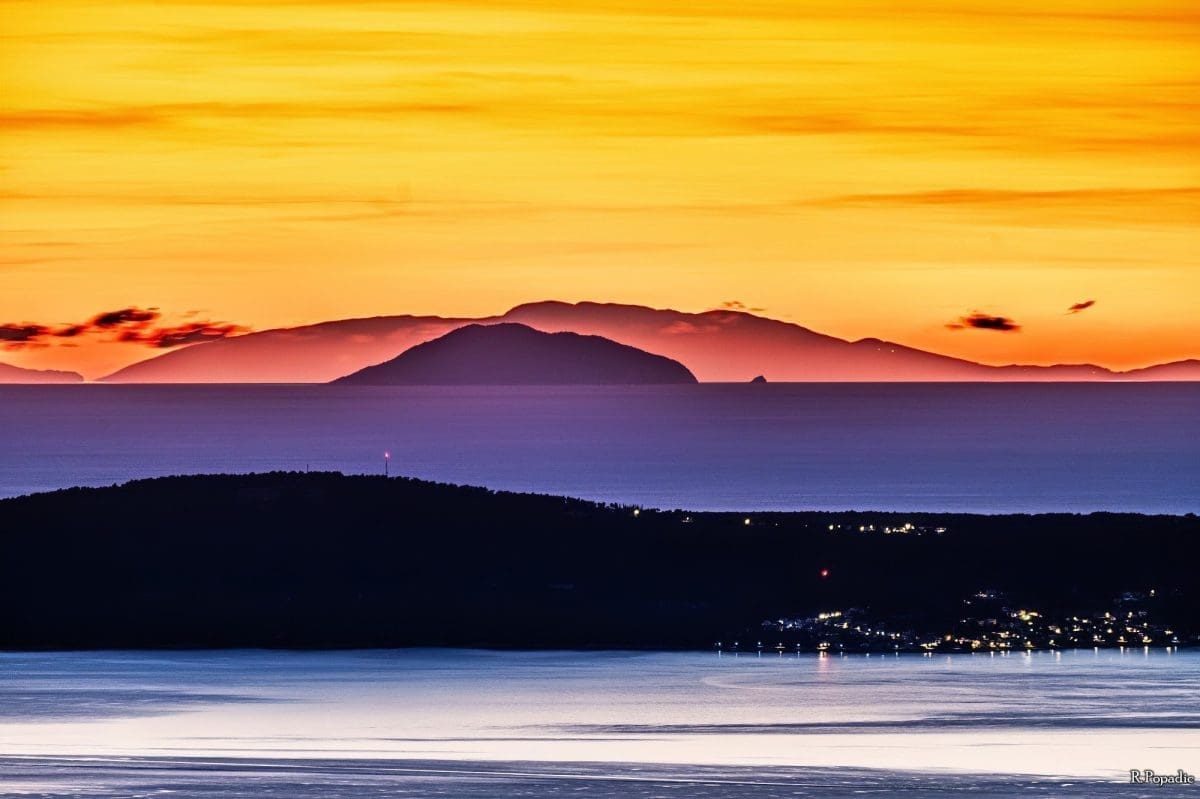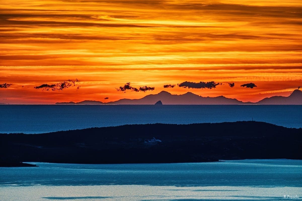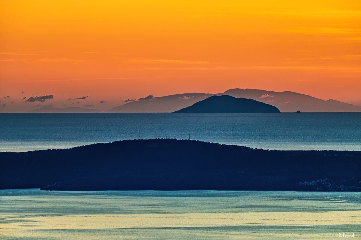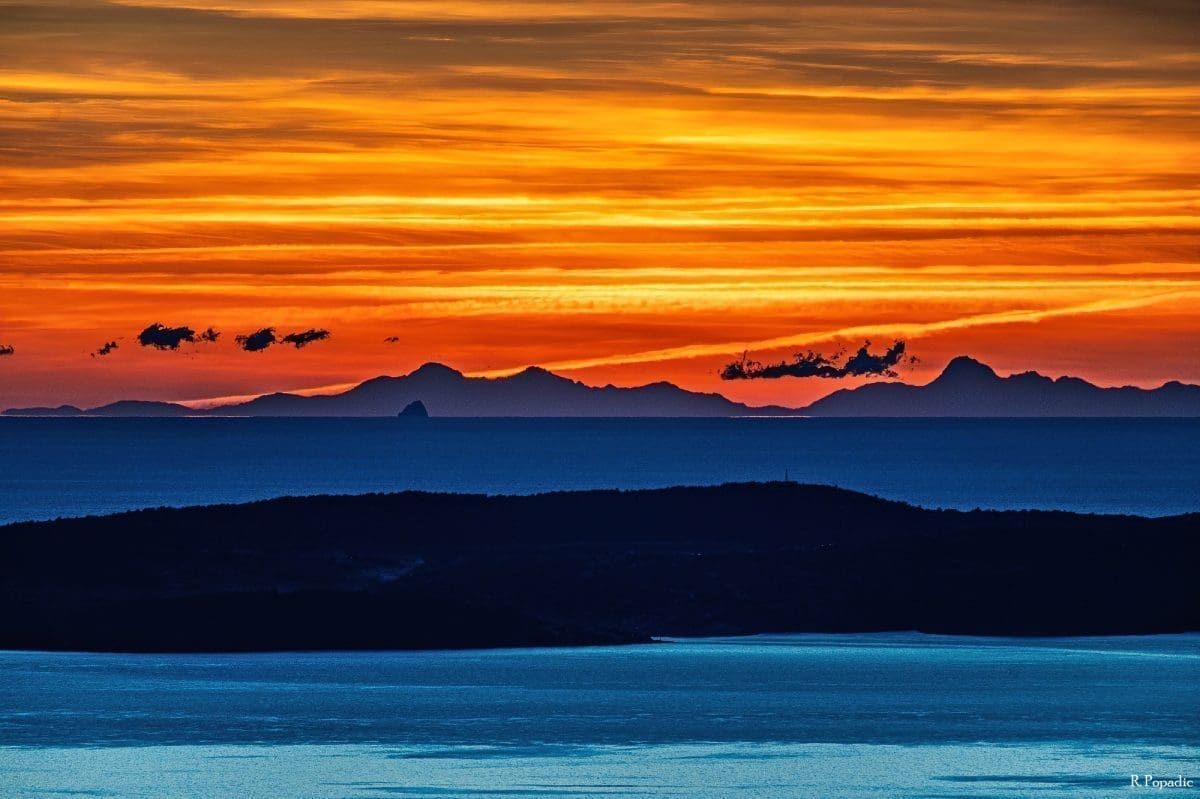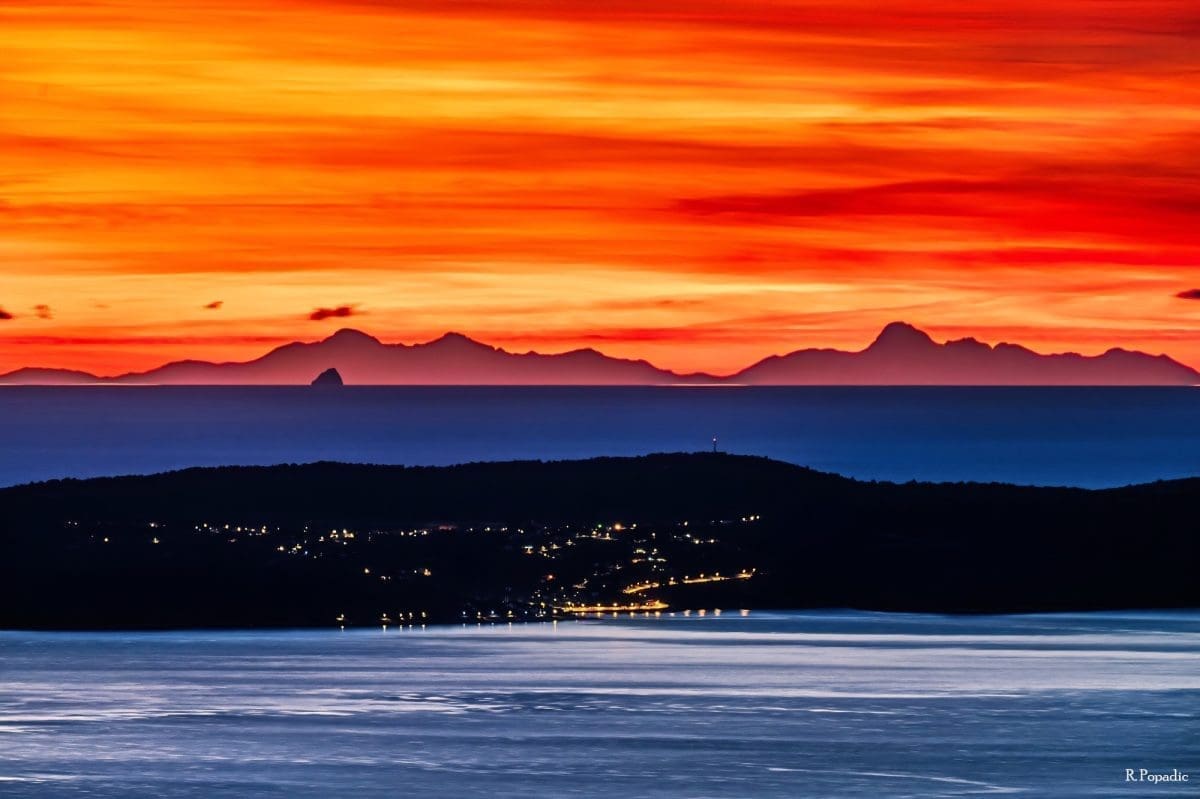 Još zapadnije na horizontu vidi se niz vrhova iznad 2.5000 m. Ovo je moguće vidjeti i zbog dobre vidljivosti koja je nastupila nakon dvodnevne bure, ali i pojave loma svjetlosti u atmosferi -superrefrakcije, koja omogućuje vidjeti i ono što je ispod horizonta.
