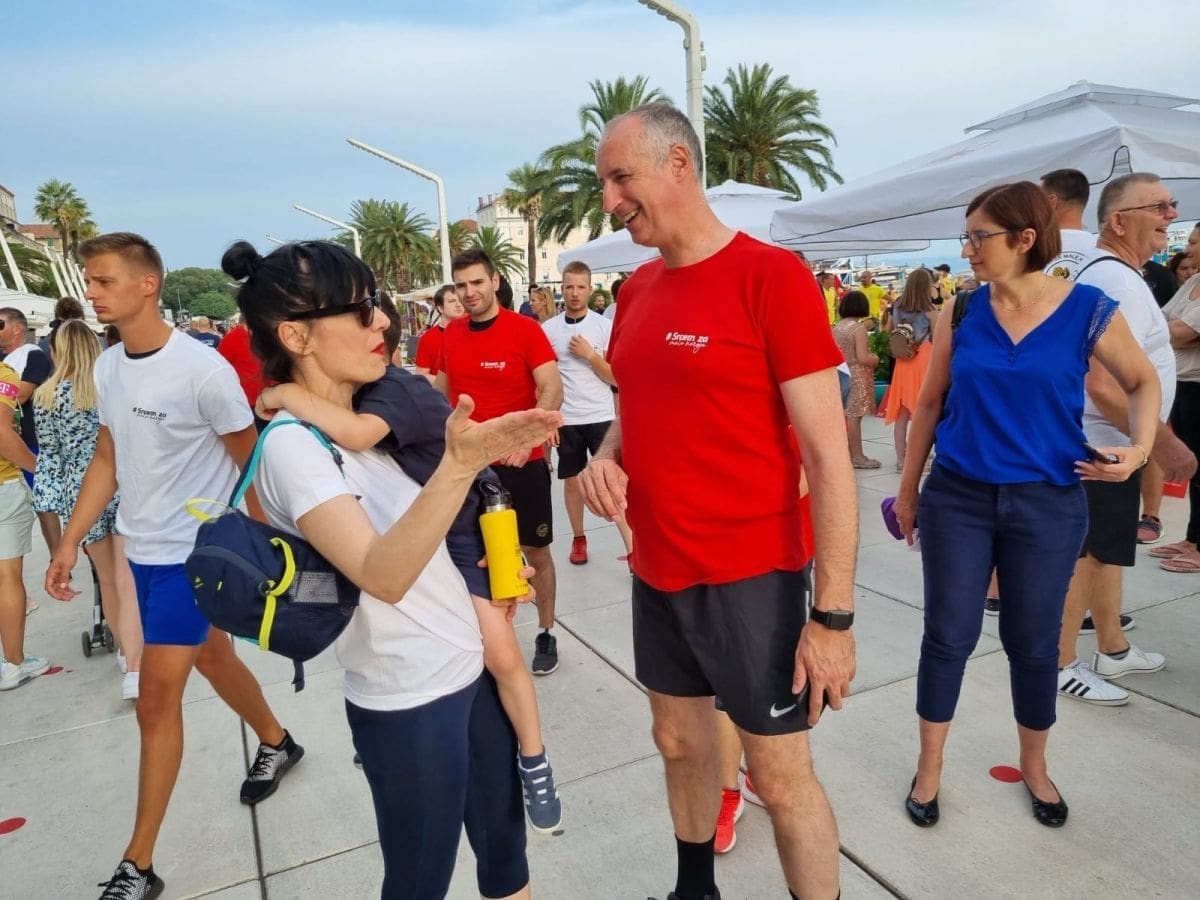 S Rive je večeras krenulo oko 150-200 trkača. Najbrži koji je stigao na cilj je 'kum' uređaja koji će se kupiti kako omogućava novorođenčadi terapiju dušikovim monoksidom.