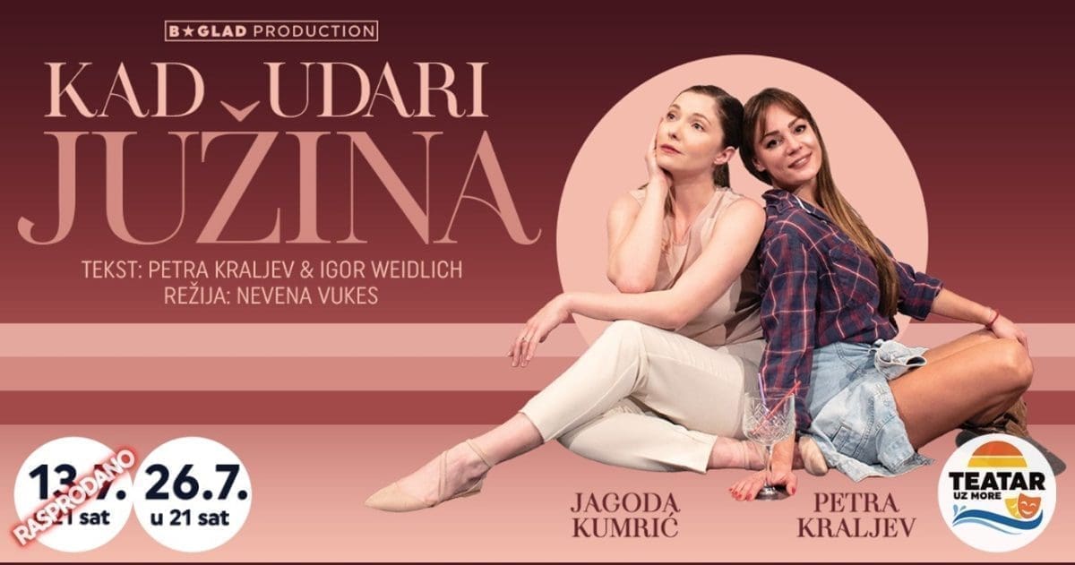 13. srpnja na Teatru uz more održava se premijera komedije "Kad udari južina" u izvedbi Jagode Kumrić i Petre Kraljev.