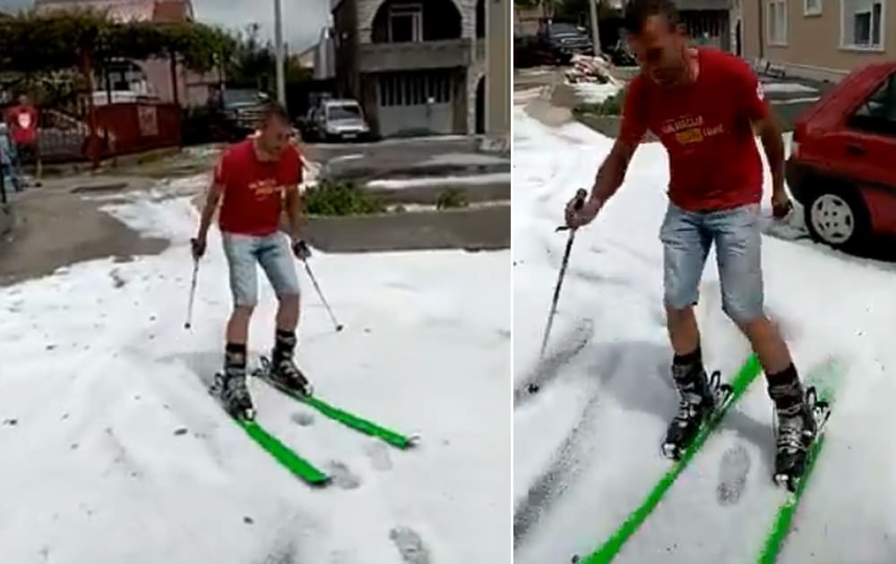 Krupa koja je pala na području Kaštel Lukšića, ponegdje i u visini od 20 centimetara, stvorila je idealnu ljetnu skijašku stazu. A kako izgleda skijanje po ulicama Kaštel Lukšića na dan službenog početka ljeta, pogledajte u videu.