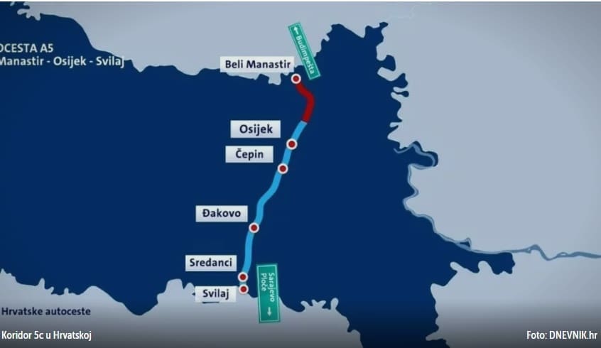 Koridor 5c u konačnici će se protezati od Ploča do Budimpešte. Kroz Hrvatsku već prolazi 59 kilometara autoceste, posljednja dionica privodi se kraju, a spoj s Mađarskom očekuje se 2024. godine. Autocestom kroz Hrvatsku u cijelosti će se moći prometovati za dvije godine, isto najavljuju i Mađari, dok iz BiH poručuju da će njima za završetak radova trebati još šest godina.