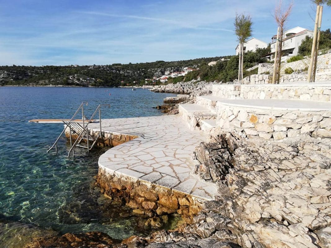 Ni tu frajer nije stao, izgradio je dva betonska zida, duljine 28 metara i stepenice koje povezuju uništeno pomorsko dobro i gore izgrađene vile koju je nakon izlaska inspekcija i dovršio. Ovog ljeta tu su bili suncobrani i ležaljke, te zeleni tapet preko makadamskog puta uz obalu, koji povezuje betoniranu plažu i ulaz dvorišta od vile, donosi Morski.hr.