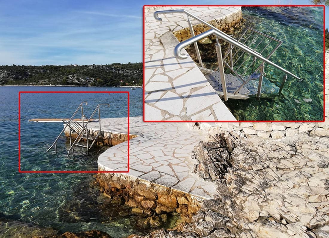 Veliko finale svakako je ovo; stepenice od inoxa za lagano ulaženje uz more, ali konstruirane tako da se zaključavaju onda kad ih (odabrani) ne koriste. Jasna je ovo poruka državi, njenim zakonima i svim građanima koji za razliku od ovakvih tipova, zakone uzalud poštuju. I baš kad mislimo da nas ništa više ne može iznenaditi, uvijek se dogodi nešto gluplje, gore, odvratnije. Tako će, čini se, biti sve dok građani i država ne odluče promijeniti ploču prema onima koji se sa svima nama izrugivaju, javlja Morski.hr.