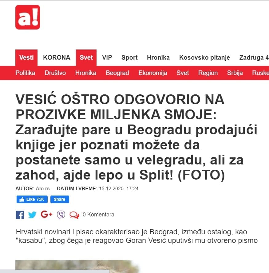 Neobičan epilog dogodio se kada su novinari srbijanskog tabloida Alo objavili tekst pod naslovom "VESIĆ OŠTRO ODGOVORIO NA PROZIVKE MILJENKA SMOJE: Zarađujte pare u Beogradu prodajući knjige...". Tekst s istim naslovom potom je prenio i portal Pink.rs, dio medijske kuće PINK u vlasništvu Željka Mitrovića.