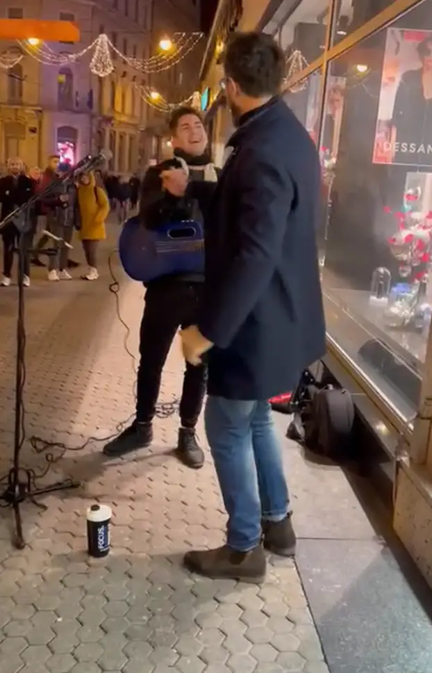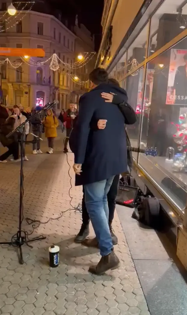 Nakon što su otpjevali pjesmu ulični svirač i Petar su se i zagrlili.