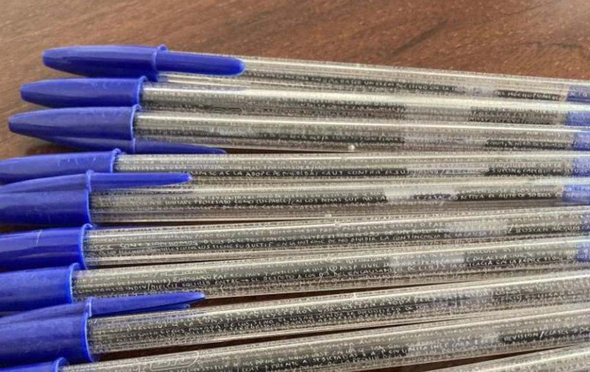 Jedan student iz Španjolske odabrao je upravo ovu drugu opciju pa je tako urezao (izrezbario) gotovo mikroskopska slova u komplet plavih kemijskih olovaka.