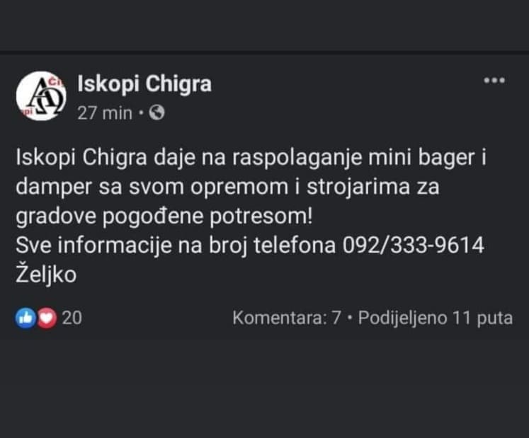Pozivu se odazvala i DIV grupa koja je stavila na raspolaganje četrdeset strojeva i kamiona koji su počeli odmah raditi prema naputku zapovjedništva Civilne zaštite u Petrinji.