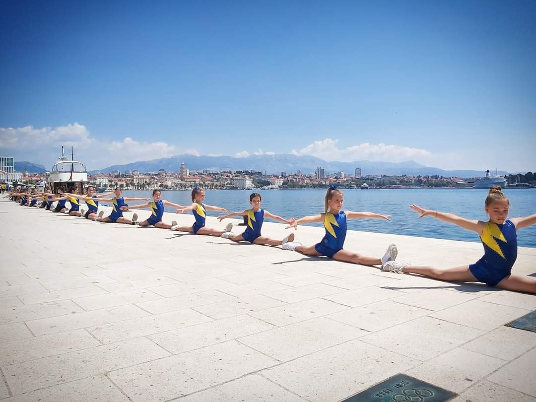 Naime, neobična vještina se odvijala u šest gradova istovremeno, uz Split tu su Rijeka, Zadar, Zagreb, Osijek i Čakovec te su tako mali gimnastičari formirali špagu duljine 370 metara.