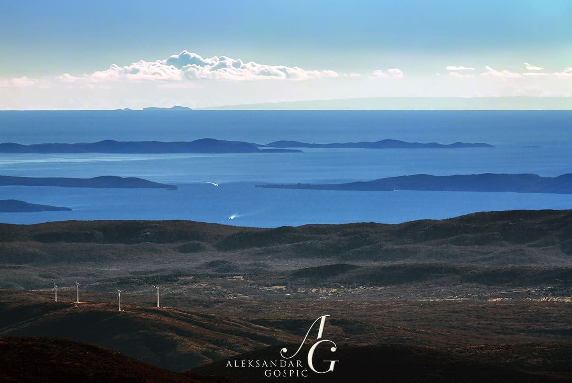 "Još jedan prizor koji se ne viđa često, posebno usred dana; pogled sa Svilaje (1509 m) u Dalmatinskoj zagori preko Jadrana do 156 km daleke Palagruže, najudaljenijeg hrvatskog otoka, i 220 km dalekog poluotoka i planine Gargano (1065 m), žulja Talijanske čizme" - napisao je Gospić u opisu ove lijepe fotografije.