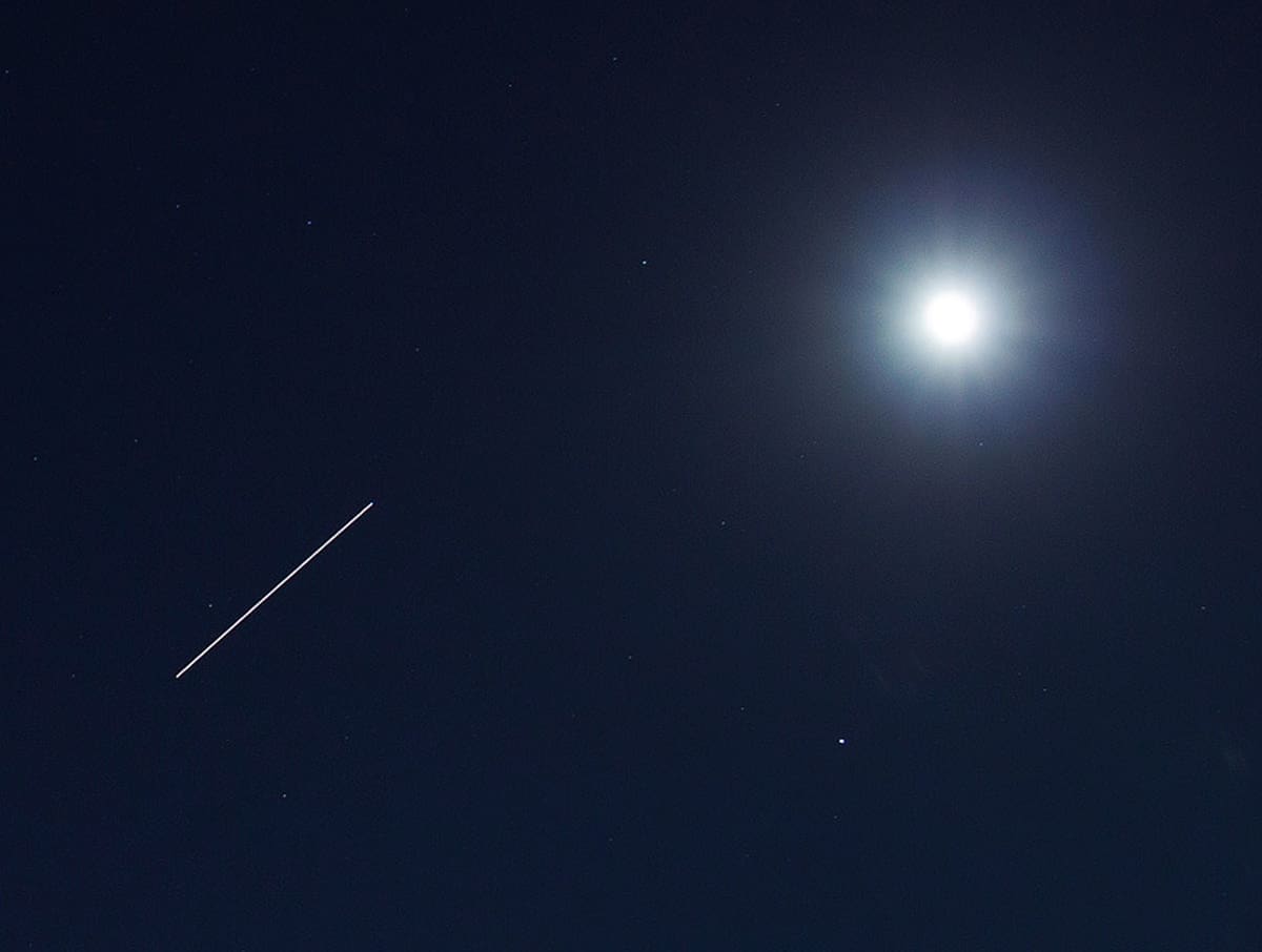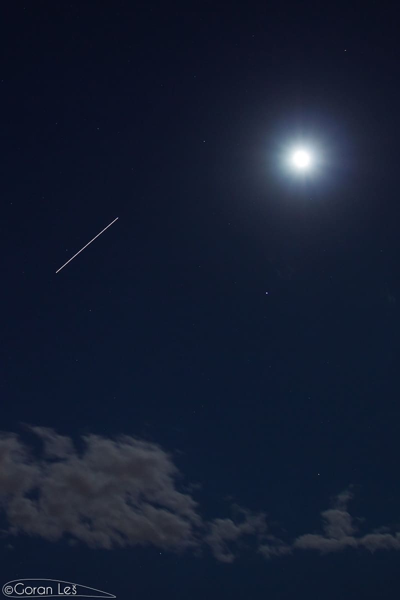 Šest svemirskih "brodova" u ponedjeljak navečer u 21:41 po lokalnom vremenu, jureći 27,500 km/h, na 420 kilometara visine, ostavilo je ovaj lipi blješteći trag tokom ekspozicije od 10 sekundi. Naravno, radi se o postavkama fotografije koju je sa splitskog područja snimio fotograf Goran Leš.