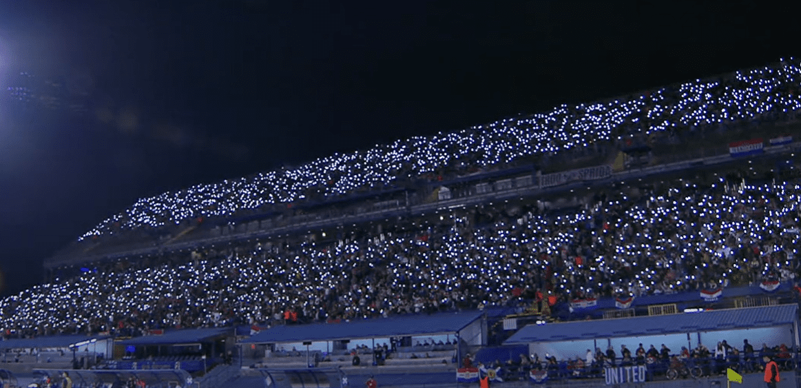 S 1:1 se i otišlo na poluvrijeme, a pred sami početak viđene su stvarno sjajne scene na Maksimiru. Preko 20 tisuća navijača upalilo je svoje bljeskalice na mobitelima i zaplesalo uz hit Baby Lasagne, prenosi Gol.hr.