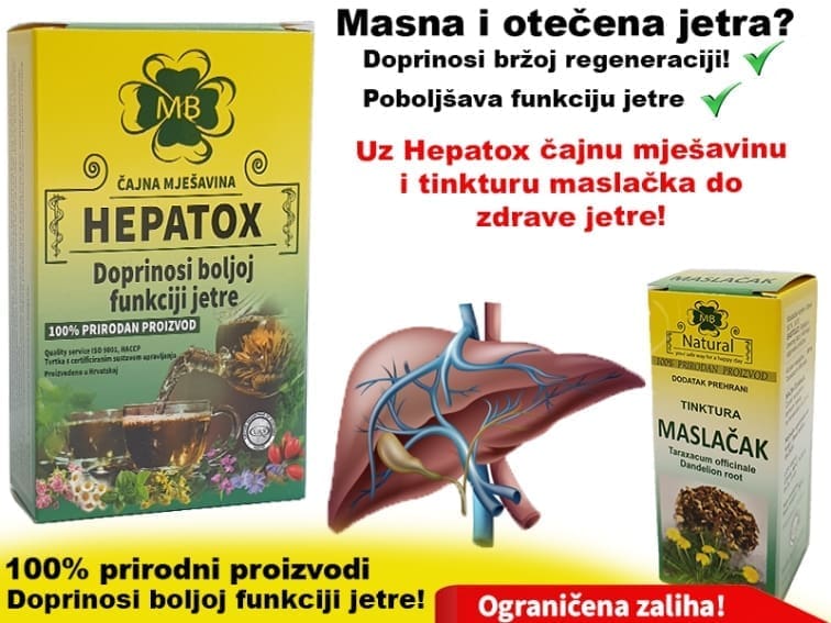 Hepatox čajna mješavina i tinktura maslačka su kombinacija pomno odabranih, najkvalitetnijih biljaka s hrvatskih prostora, dugogodišnje recepture te detaljno osmišljenog omjera sastojaka, što nam svakodnevno potvrđuje veliki broj zadovoljnih i redovitih korisnika. Hepatox čajna mješavina doprinosi normalnoj funkciji jetre, želuca, a svojim djelovanjem može pomoći kod reduciranja tjelesne težine. Neki od sastojaka u Hepatox paketu su - maslačak, neven, stolisnik i drugi. Ove biljke se, u narodnoj medicini i racionalnoj fitoterapiji, koriste u liječenju mnogobrojnih poteškoća povezanih s funkcioniranjem jetre. Oplemenjuju ih razna svojstva, poput „čišćenja“ i brže regeneracije jetre, smanjenja oteklina i upale jetre, bolje probave, smanjenja nadutosti, grčeva i boli koja biva prisutna ispod desnog rebrenog luka.