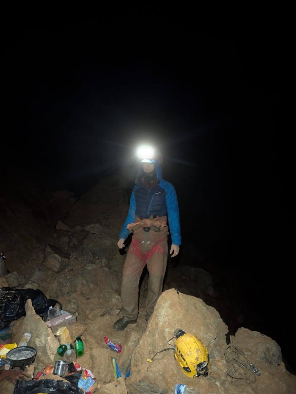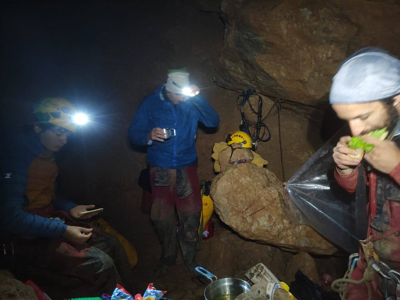 Nakon napornog uspona ekipa je ponovno prenoćila u bivku na 600 metara dubine, gdje ih je dočekao topli čaj.