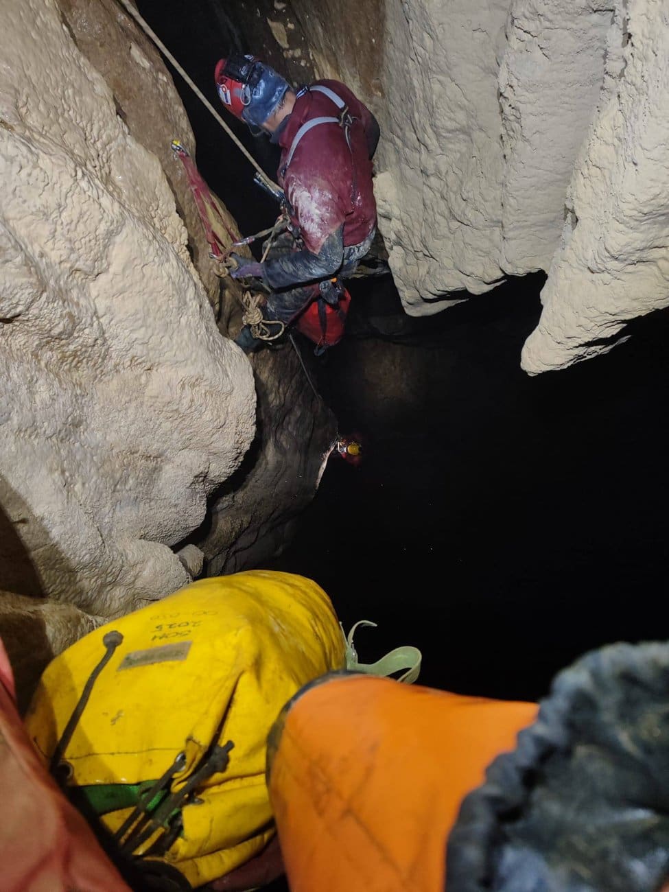 Dok je jedan član ekipe ondje ostao sušiti opremu i grijati se, ostatak tima nastavio je spuštanje prema dnu jame i trećem bivku.
