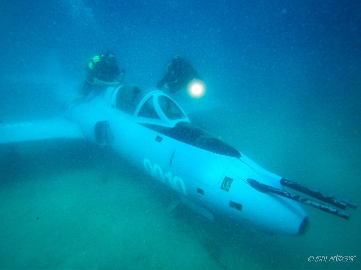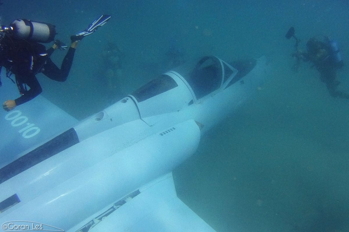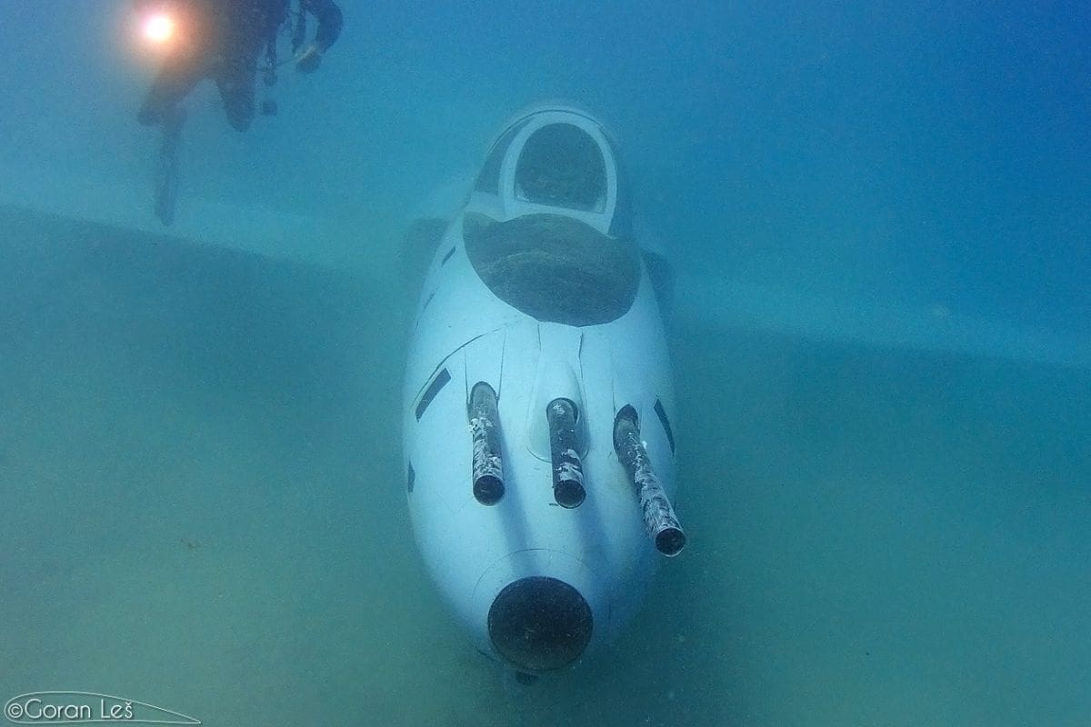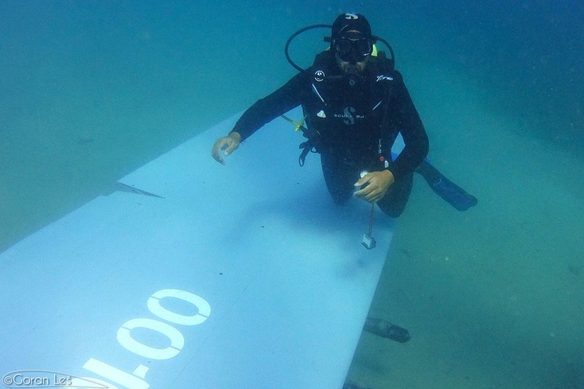 Nakon što je transportiran u Kaštela, sastavljen, obojan i doveden u nešto prezentabilnije stanje, spušten je u more, otegljen u uvalu Jelinak i potopljen na dubini od oko deset metara.