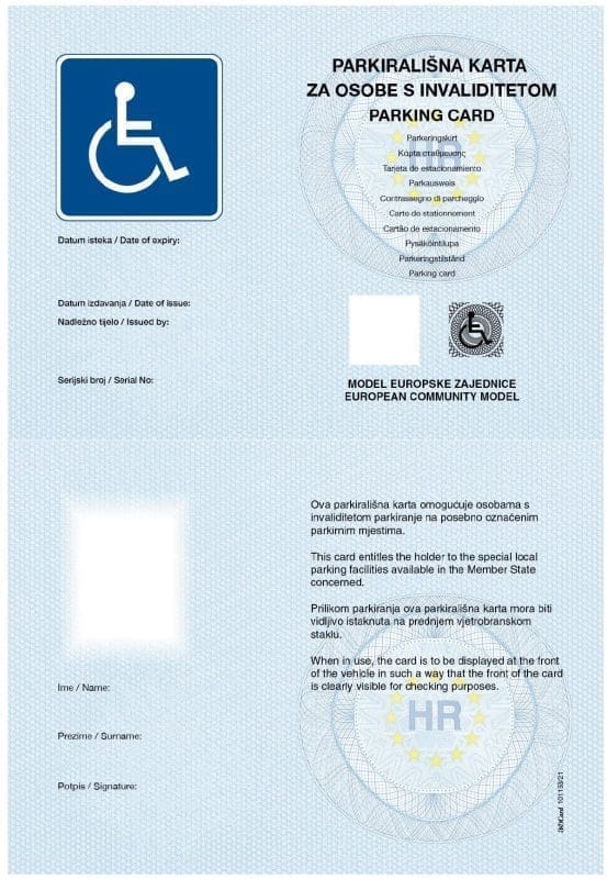 [Plavo]Rok važenja parkirališne karte za osobe s invaliditetom je tri godine od utvrđivanja prava na korištenje parkirališne karte nositelju prava.[KRAJ]