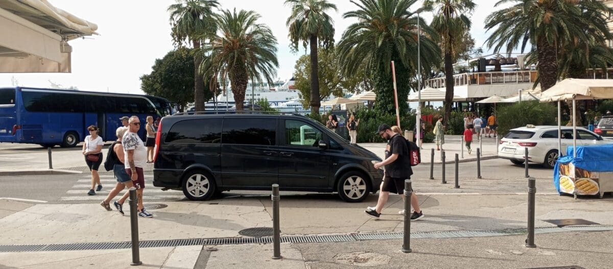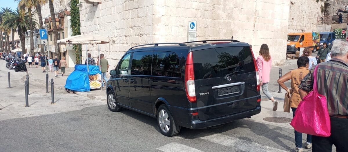 Pomalo nevjerojatan slučaj bilježi se na dnu Hrvojeve ulice u Splitu, uz jugoistočni kut Dioklecijanove palače. Naime, crni kombi marke Mercedes bez registarskih oznaka već danima stoji na rubu ulice, a dijelom je parkiran na pješački prijelaz.