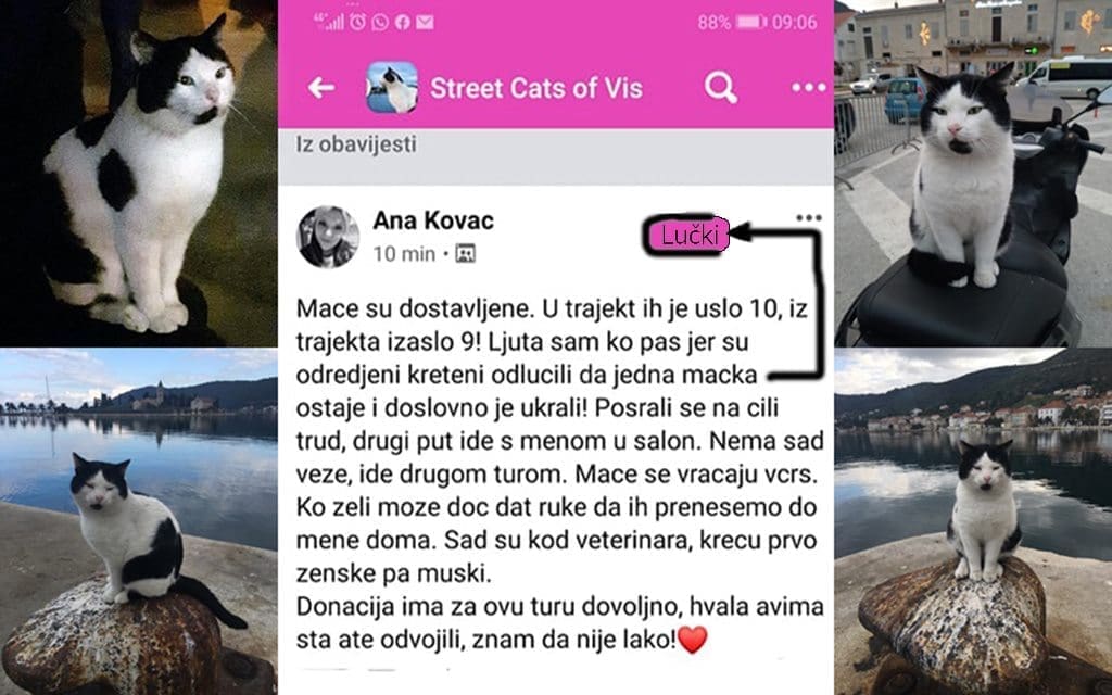 – Taj neki stanovnik je stari prdonja koji ne zna ni kako Lučki izgleda, nikad ga nije nahranio, pomazio ili nešto treće. Lučki nije maca Višana i srednjeg jadrana, već ulični mačak koji po zakonu Lijepe naše, a uskoro i po odluci Grada Visa MORA bit steriliziran/ kastriran. Pametnome dosta.