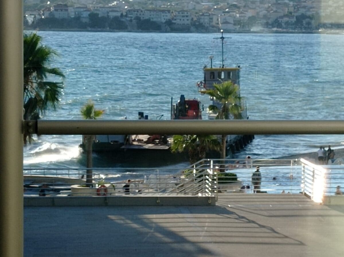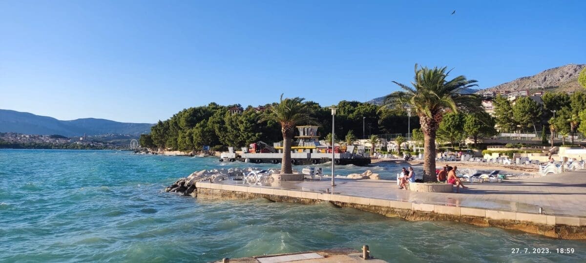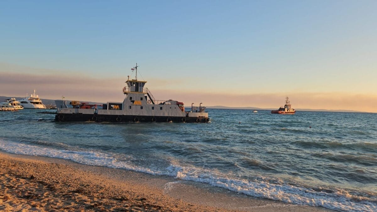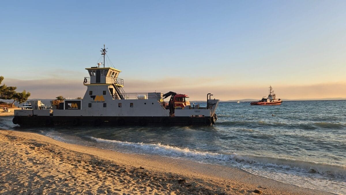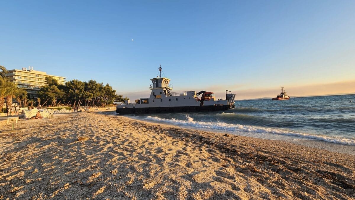 Jedna teglenica sondirala je tijekom četvrtka teren ispred marine hotela Lav, a onda se uslijed nepoznatih okolnosti ovaj brod nasukao na plažu.