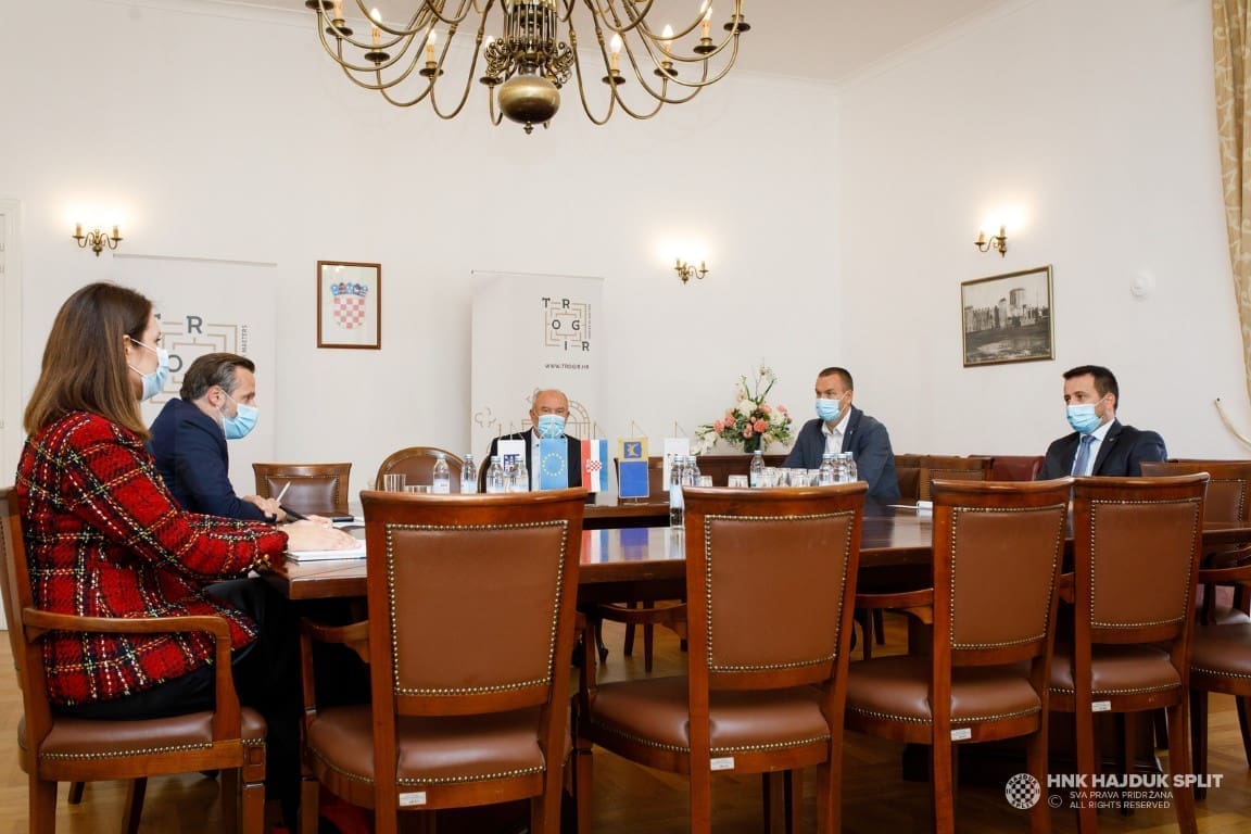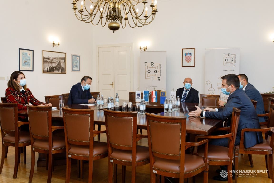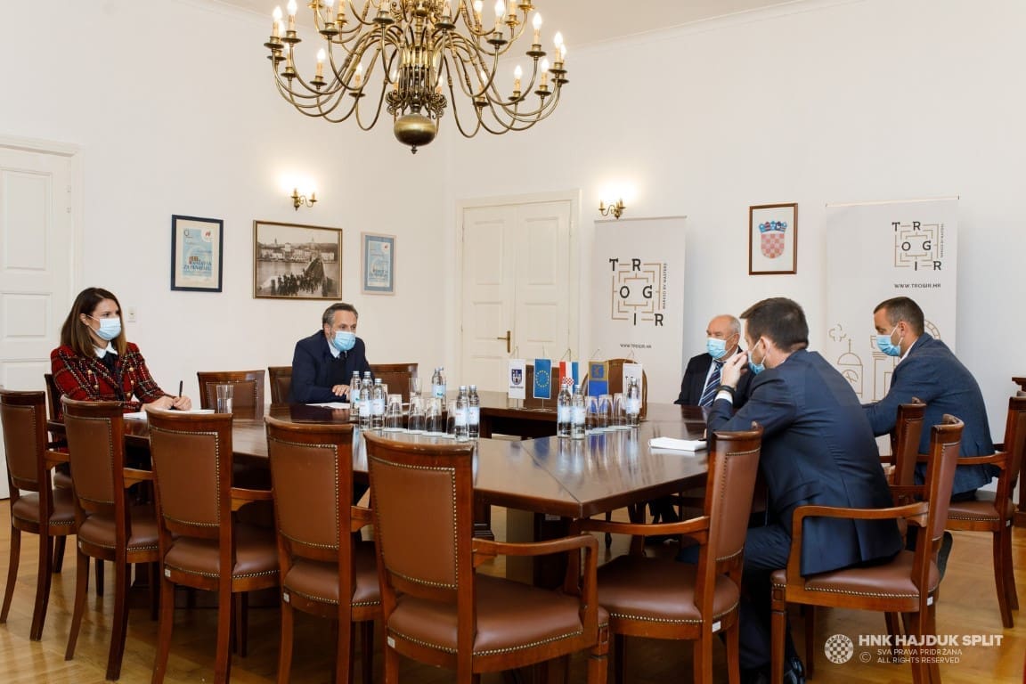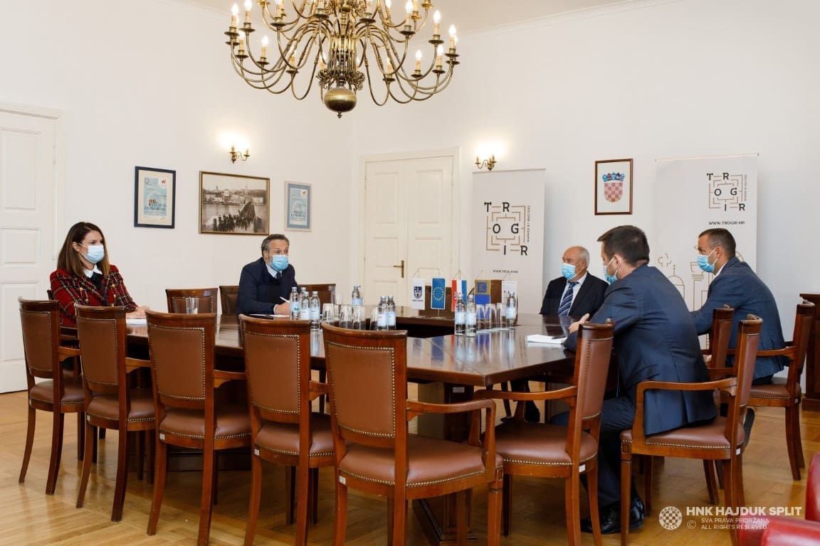 Nastavak je to rada na kapitalnom infrastrukturnom projektu za Hajduk, ali i jako važnom projektu za Trogir, koji je inicijalno započet u srpnju suglasnošću Gradskog vijeća Grada Trogira. Ovom prilikom razgovaralo se o nekoliko važnih tema, s prioritetom postupka prebacivanja vlasništva zemljišta s Ministarstva obrane RH na Grad Trogir, zbog čega je održano već nekoliko sastanaka s MORH-om. Gradonačelnik Bilić izvijestio je kako Grad već intenzivno radi na parcelaciji zemljišta i kako se kroz 10-ak dana može očekivati upisivanje u katastar. Također, Grad je već pokrenuo Izmjene i dopune Prostornog plana na Gradskom vijeću, a taj posao može potrajati tri do šest mjeseci.