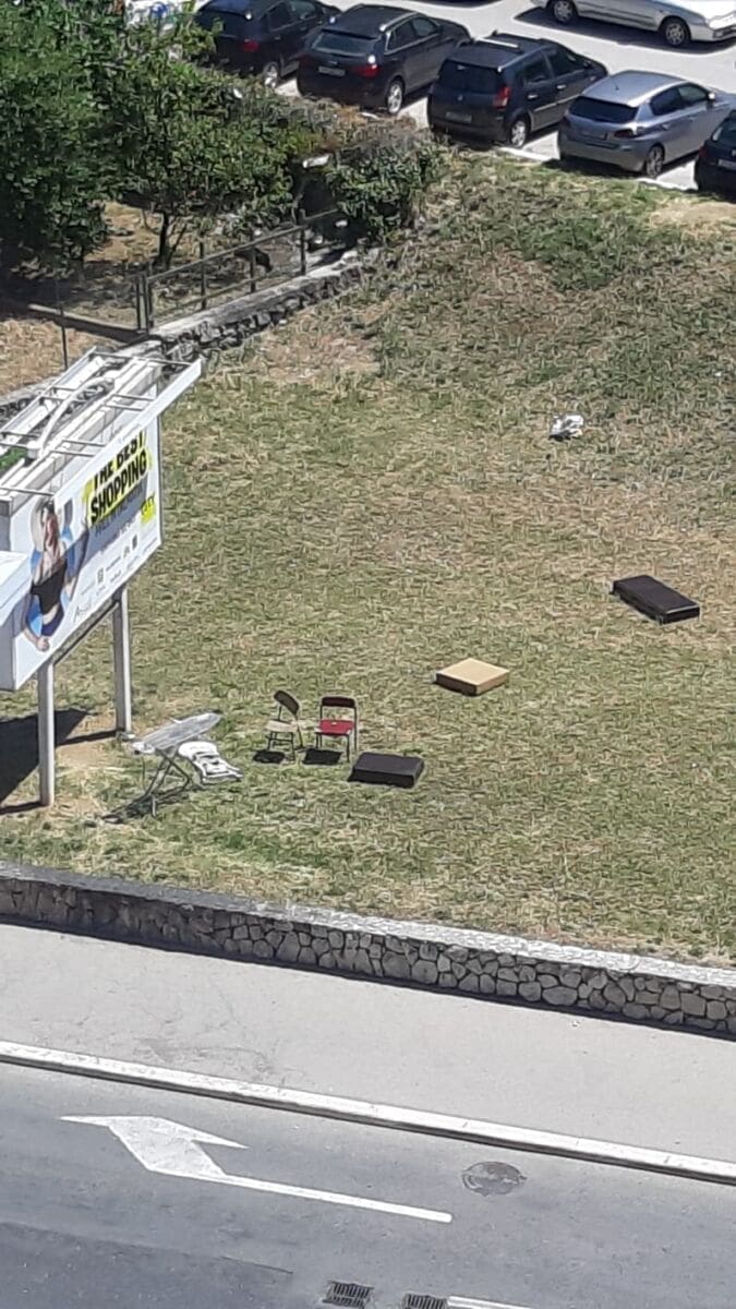Naime, pokraj jedne od najprometnijih cesta u Splitu, koja se proteže kroz Ulicu Domovinskog rata, netko je ostavio, vjerovali ili ne, stolice i stol za peglanje.