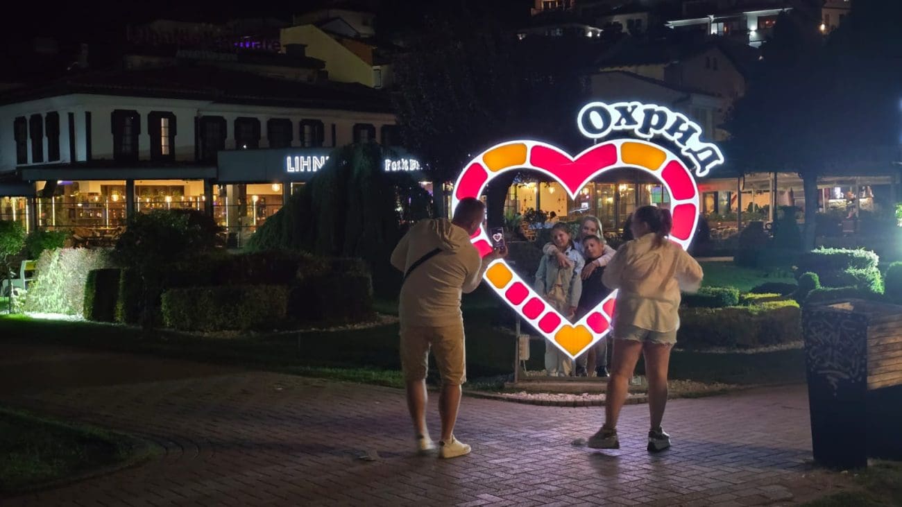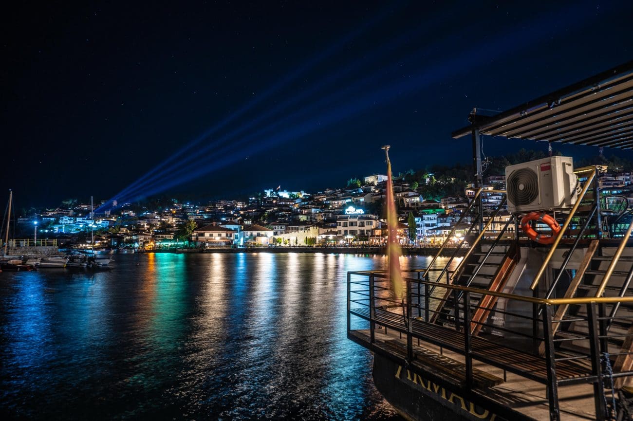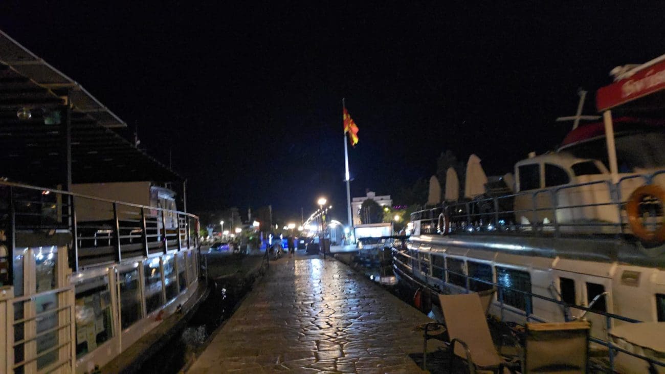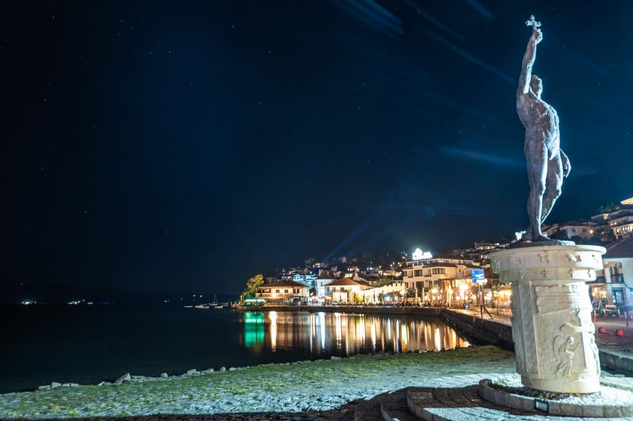Iako je već bilo prošlo 20 sati i iako sam, spletom okolnosti, vrlo kasno krenuo u razgledavanje Ohrida, pokazat će se da mi je to bio jedan od najdražih dijelova putovanja. Za početak – Raim. Tako se zove vozač taksija kojeg sam upoznao. Novinarski sam poželio doznati malo više o životu prosječnog taksi-vozača u Ohridu i životu u ovom makedonskom gradu općenito. Pribojavao sam se da će mu to biti dosadno i da neće biti pričljiv. No Raim mi je iskreno i opširno odgovarao na svako pitanje, a povjerio mi je i neke stvari iz osobnog života. Kazao mi je zanimljivost da su njegovi preci stigli iz Egipta i trajno se nastanili u Makedoniji. Kaže da turistička sezona nije kao lanjskih godina i da traje kratko, ali da je život u Ohridu općenito skup u usporedbi s ostatkom zemlje. Na kraju me Raim odvezao do tvrđave iznad grada jer sam od tamo planirao raditi noćne panoramske fotografije. Kada me iskrcao ispred tvrđave, dobio je nekoliko vožnji i tu smo pričali još pola sata – o životu u Hrvatskoj i Makedoniji, o aktualnoj političkoj situaciji, o istim brigama vezanim uz budućnost.