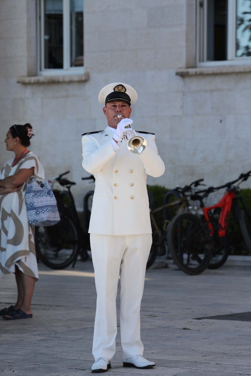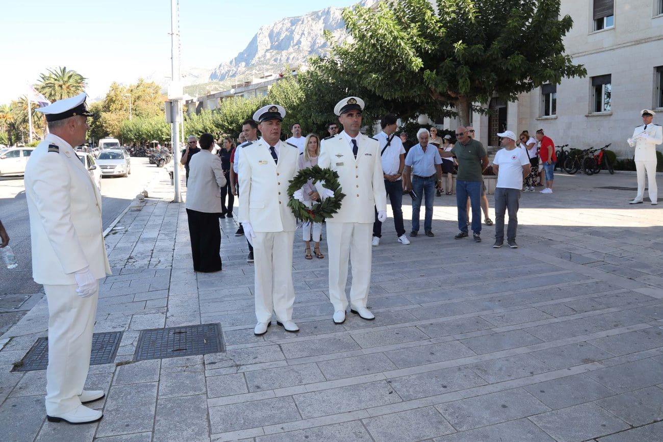 Proslava Dana Hrvatske ratne mornarice, koji se obilježava u spomen na slavnu pomorsku bitku iz 887. godine, jutros je započela polaganjem vijenca na Spomen-ploču pomorske bitke kod Makarske, koji su zajednički položili delegacija Grada Makarske i Hrvatske ratne mornarice: gradonačelnik Zoran Paunović, njegova zamjenica Antonia Radić Brkan, nadnarednik Slaven Šimović, stožerni narednik Niko Ilić i bojnik Željko Jovica. Molitvu odrješenja molio je mons. Pavao Banić, a mirozov je odsvirao satnik Šime Glavina, prvi trubač Orkestra HRM-a.