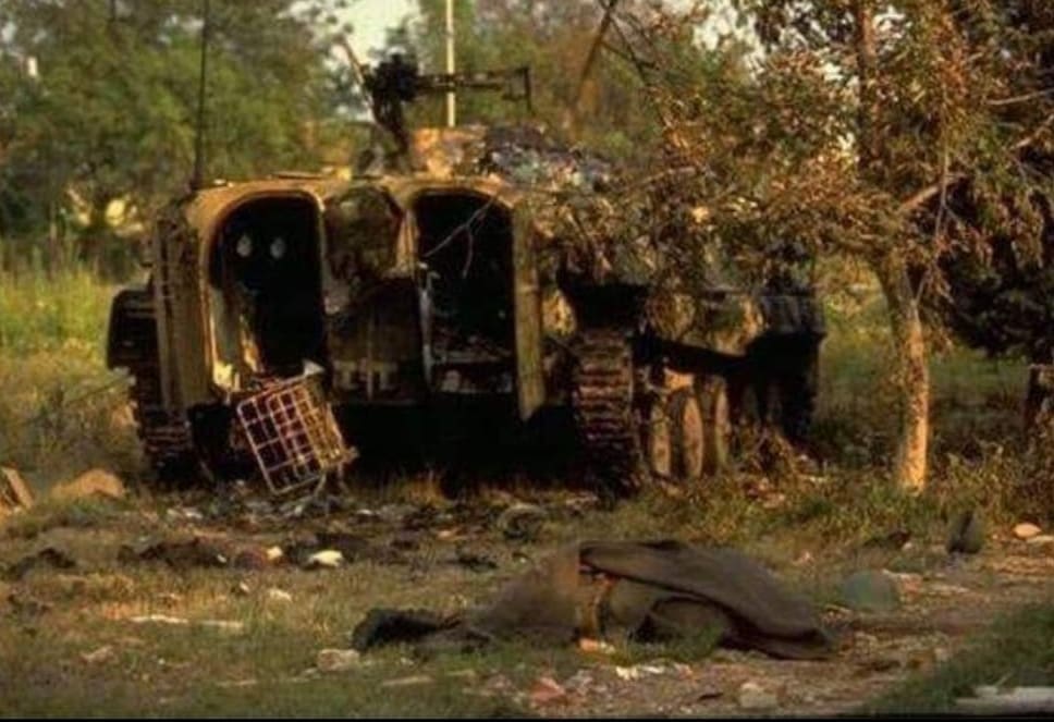 Jednostavno djeluješ u tom trenutku i nema povratka niti usporene kamere, nema povratka. Došli su i oni pameti pa su smanjili broj tenkova ili smo ih mi smanjili, pa su počeli lagano ravnati kuće redom tako da smo se i mi prilagodili. Ja bih ušao u čitavu kuću i čekao da tenk dođe do kuće. Vidiš ga, čuješ i osjetiš namjestiš tromblon stisneš kundak ispod pazuha i pucaj pa bježi. Marko bi vikao: „Otkinut će ti rame, tko još puca tromblone s ramena?!!!“ dok mu nisam pokazao. I tako sam pogodio četiri tenka, pojma nemam jesam li im nanio kakvu štetu, najbitnije je bilo da posada od šoka ili straha krene bježati iz tenka, a onda su bili laka meta za momke oko mene. Moram spomenuti jedan događaj, ali prije toga sad kad razmislim o svemu tome mi nismo bili normalni. To kako smo se mi igrali s njima ne da nema u filmovima, nego se ni crtani ne bi mogao napraviti.