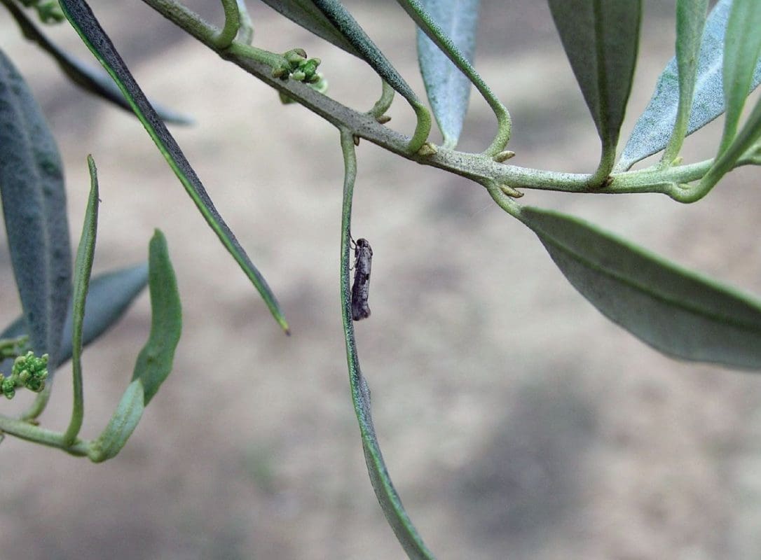 Nakon izlaska iz jaja gusjenice prve generacije se ubušuju u pupove, ali izgrizaju i već otvorene cvjetove. Hraneći se gusjenice prelaze sa cvijeta na cvijet zapredajući cvjetnu resu koja se potom osuši. Stupanj oštećenja od ove generacije ovisi između ostalog i o intenzitetu cvatnje. Nakon kukuljenja leptiri druge generacije odlažu jaja u blizini peteljke formiranih plodića iz kojih nakon nekoliko dana izlaze gusjenice koje ulaze u plod krećući se prema središtu, odnosno koštici koju iznutra izgrizaju. Posljedica napada je otpadanje plodova.Okolišno prihvatljiva metoda koja se već godinama koristi je tzv. metoda konfuzije ili zbunjivanja koja se temelji na primjeni feromona. Naime svrha ove metode je zbuniti, odnosno dezorijenitrati mužjake te im onemogućiti kontakt sa ženkom što za posljedicu ima izostanak kopulacije. Dosadašnja upotreba zasnivala se uglavnom na “pasivnim dispenzerima” koji se u većem broju postavljaju u krošnju masline i postupno otpuštaju mirise (feromone). Za razliku od pasivnih postoje i uređaji koji su programirani na način da otpuštaju mirise u spreju (aerosoli) u točno određeno vrijeme.