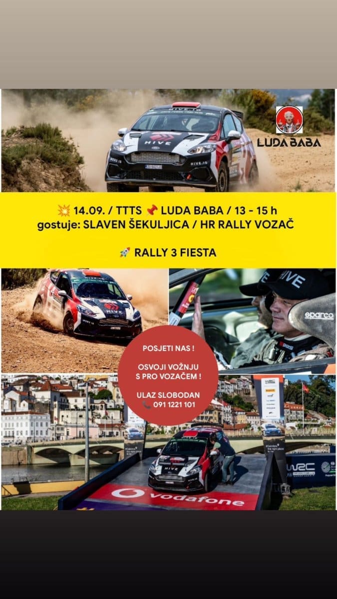 Nakon spektakularnog nastupa na Svjetskom rally prvenstvu u Grčkoj (WRC Acropolis Rally), hrvatski rally vozač Slaven Šekuljica stiže u Lude Babe sa svojom Rally 3 Fiestom! Rally zvijezda će u Lude Babe biti 14. rujna (subota) od 13 do 15 sati.