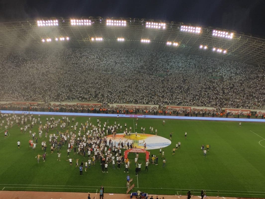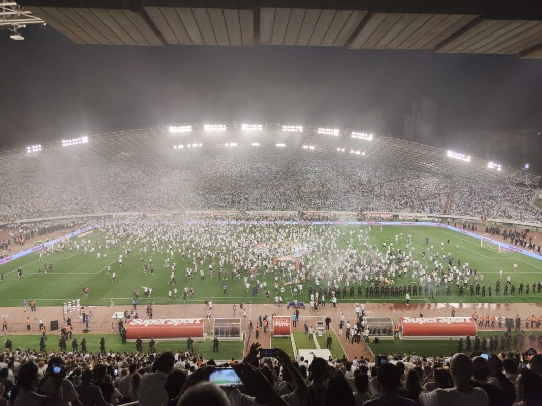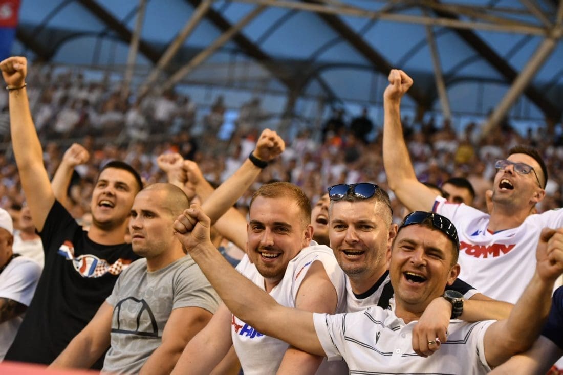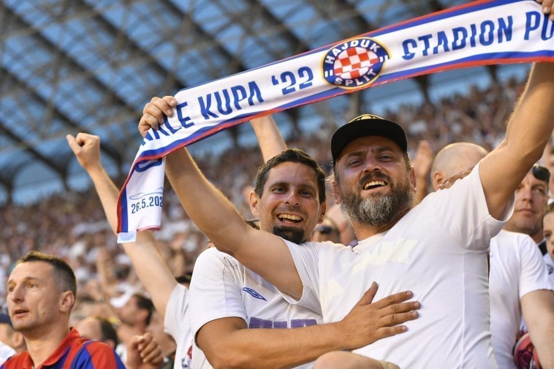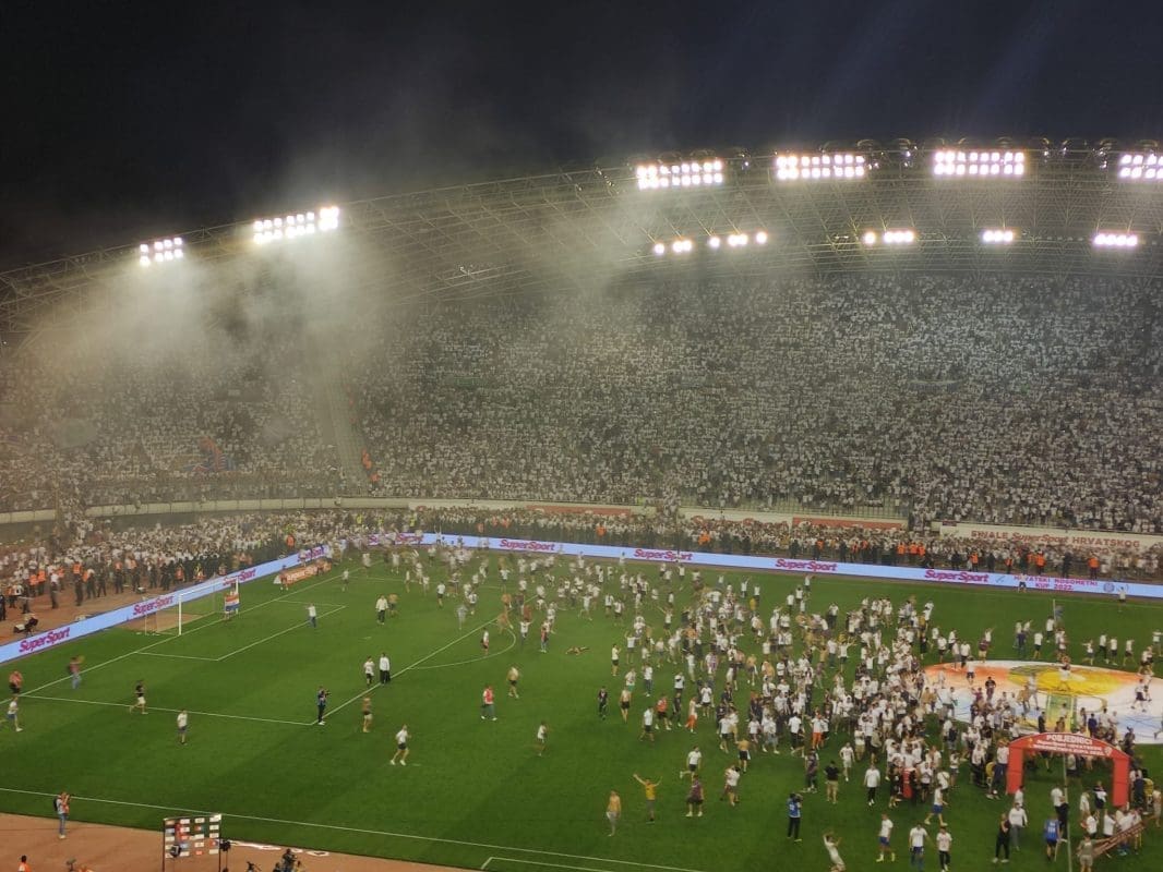 Nakon što je sudac svirao kraj utakmice, brojni navijači Hajduka 'uletjeli' su na travnjak Poljuda te se su slavili sa igračima.