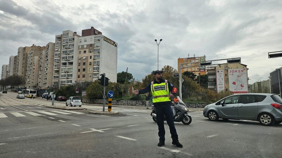 Na križanju Ulica Domovinskog rata – Dubrovačka ulica prometni redar Grada Splita regulira promet dok traju radovi prilagodbe raskrižja i semaforske signalizacije.