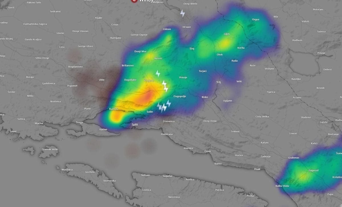 Jak grmljavinski oblak zahvatio je iza 13 sati područje Kozjaka i njegovog zaleđa, ali je tek rubno prošao preko Kaštela. Pri tome je bilo i jačih grmljavinskih pljuskova koji su donijeli i kratkotrajne bujice.