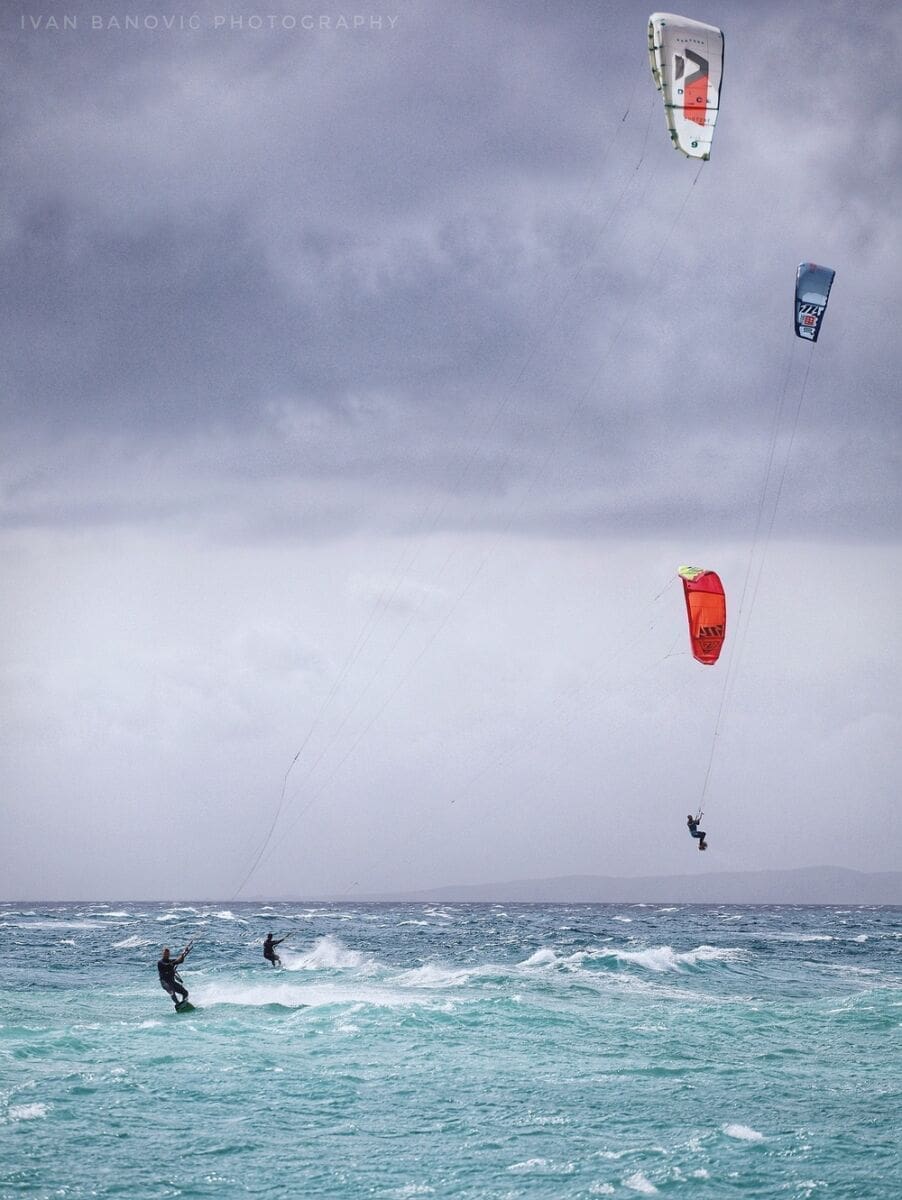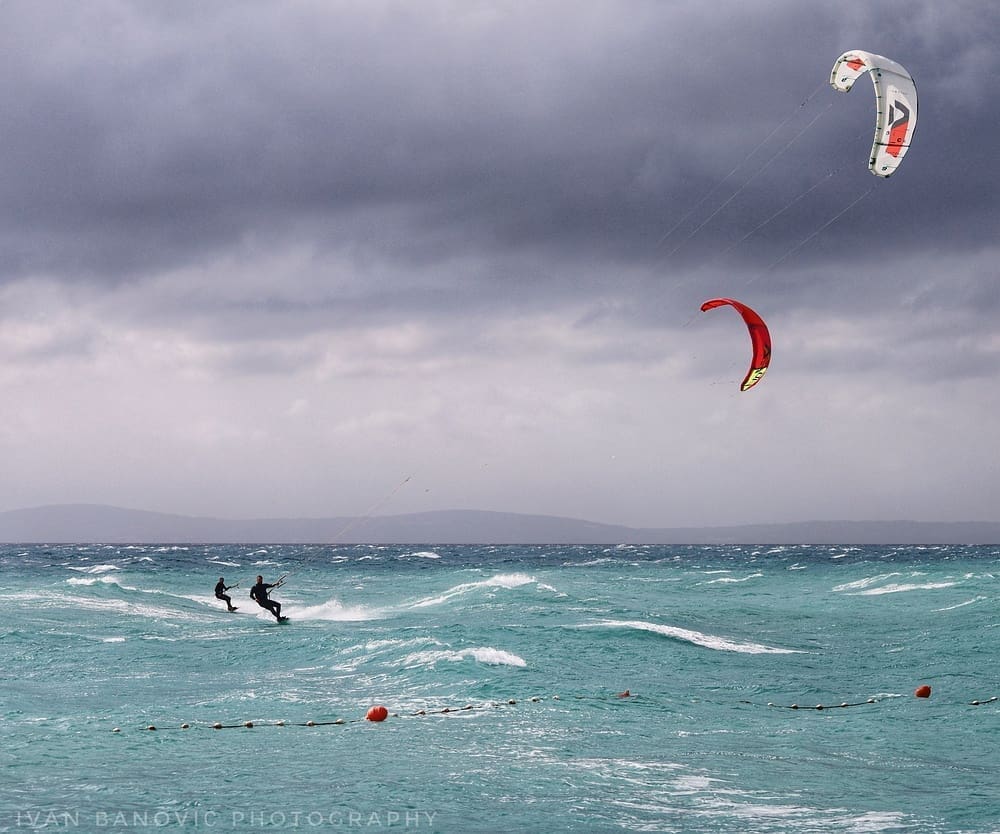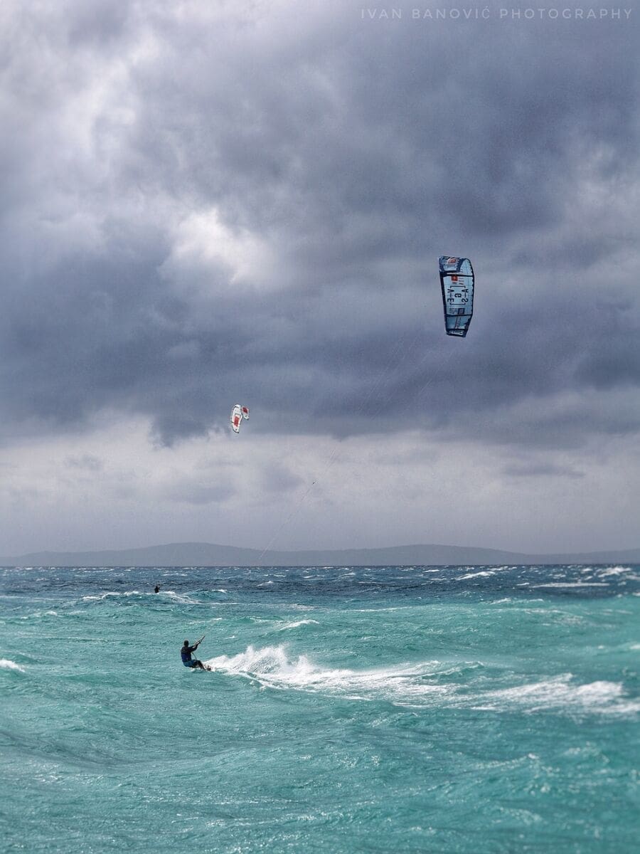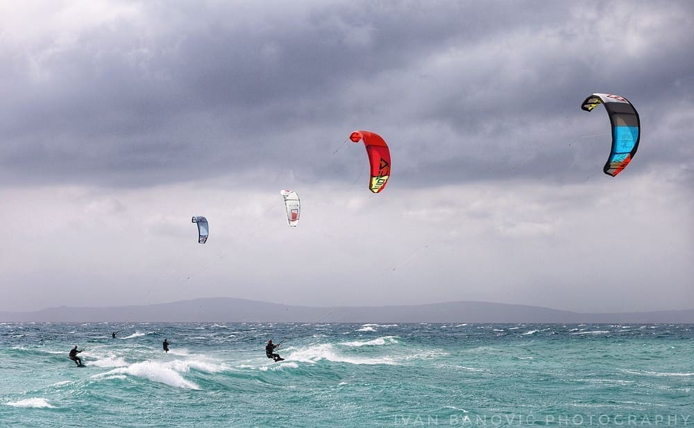 Ovako snažno jugo motiviralo je surfere i kitere koje su danas na splitskim plažama izišli na more, čak i u ovako opasnim vremenskim uvjetima.