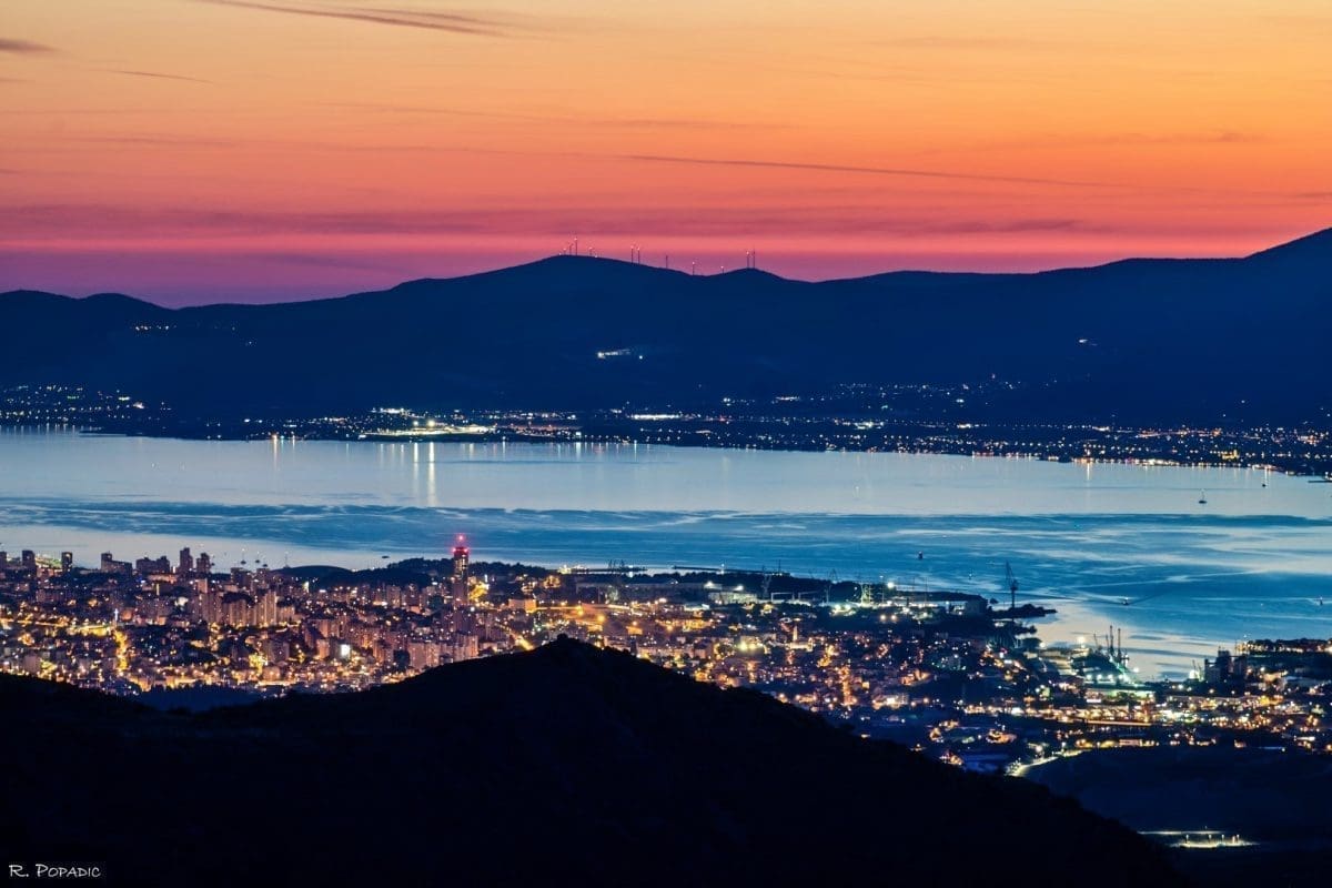 U nastavku vam donosimo nekoliko prizora snimljenih sa Zvjezdanog sela Mosor koje se nalazi na 700 metara nadmorske visine. Intenzivno nebesko rumenilo javilo se nakon zalaska Sunca, čineći pogled prema Splitu i Kaštelanskom zaljevu vrlo atraktivnim.