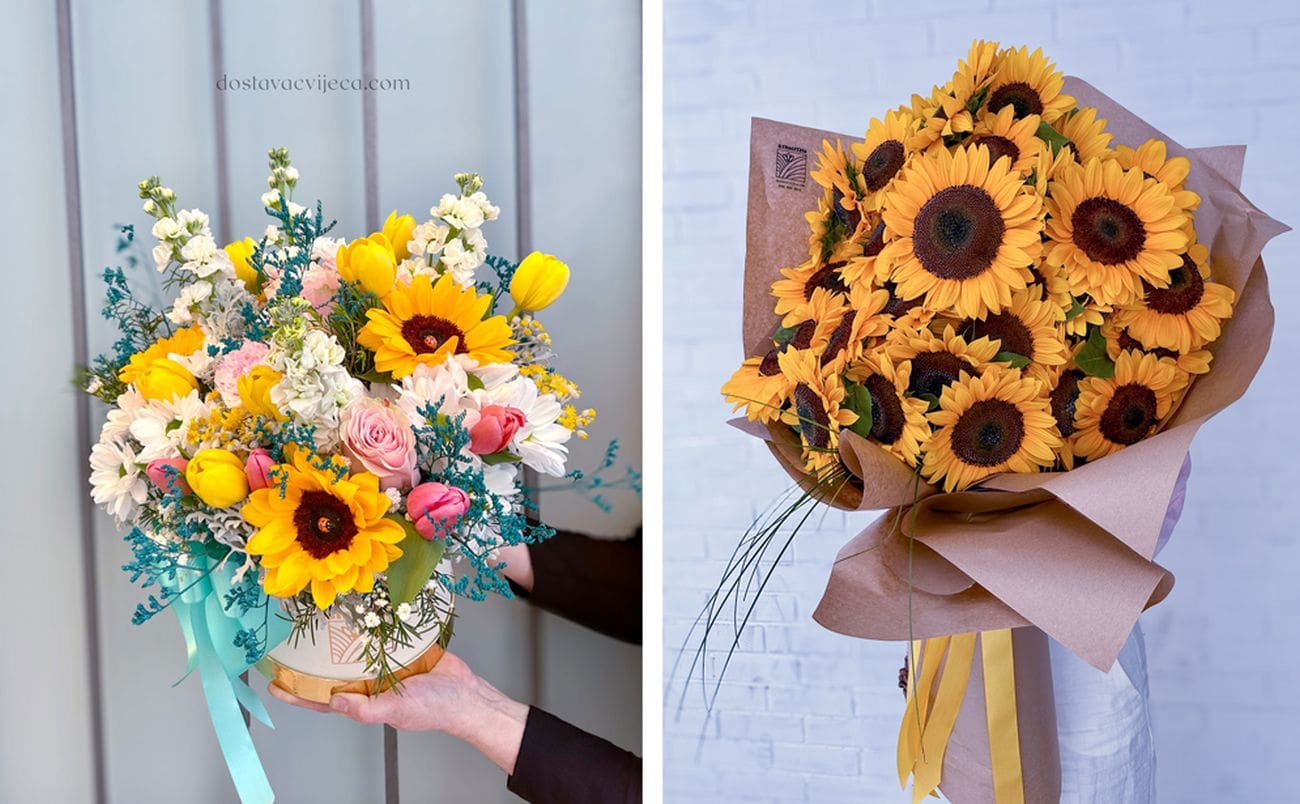 Buket suncokreta odličan je za nekoga tko voli odvažno i poletno cvijeće ili za slavljenje ljubavi koja je puna sunca i optimizma.
