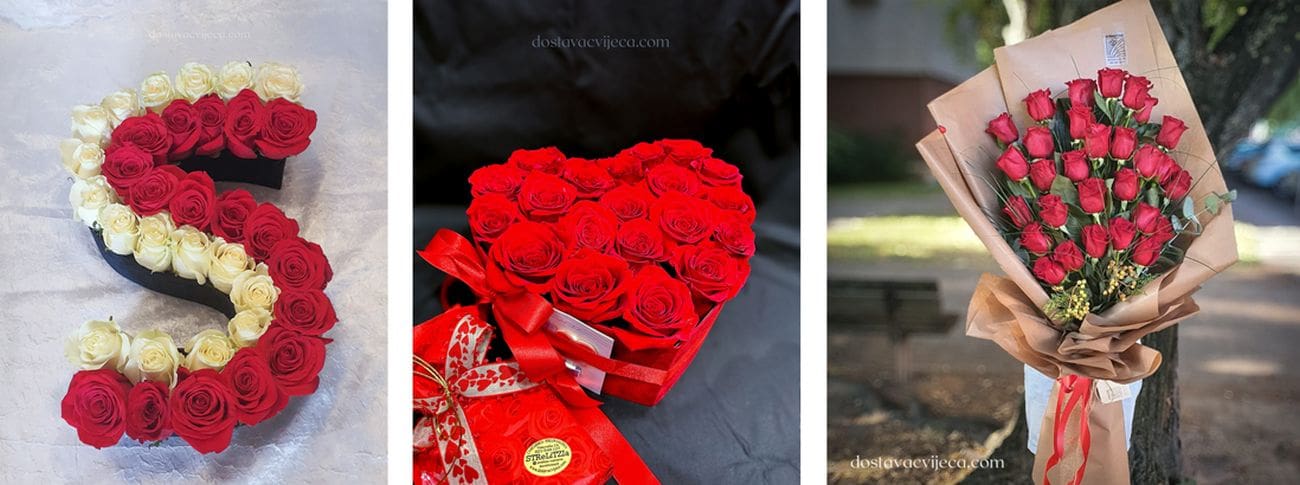 - crvene ruže – simboliziraju ljubav, strast i duboku romantiku. Esencijalni izbor za parove.