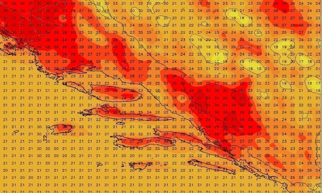 Danas nas očekuje pretežno vedro vrijeme. Popodne se tek uz granicu s BiH može javiti povećana naoblaka uz mogućnost prolaznog i slabog pljuska. Puhat će slab maestral, navečer tiho ili burin. Bit će vrlo toplo s najvišim dnevnim temperaturama od 23 do 30°C.