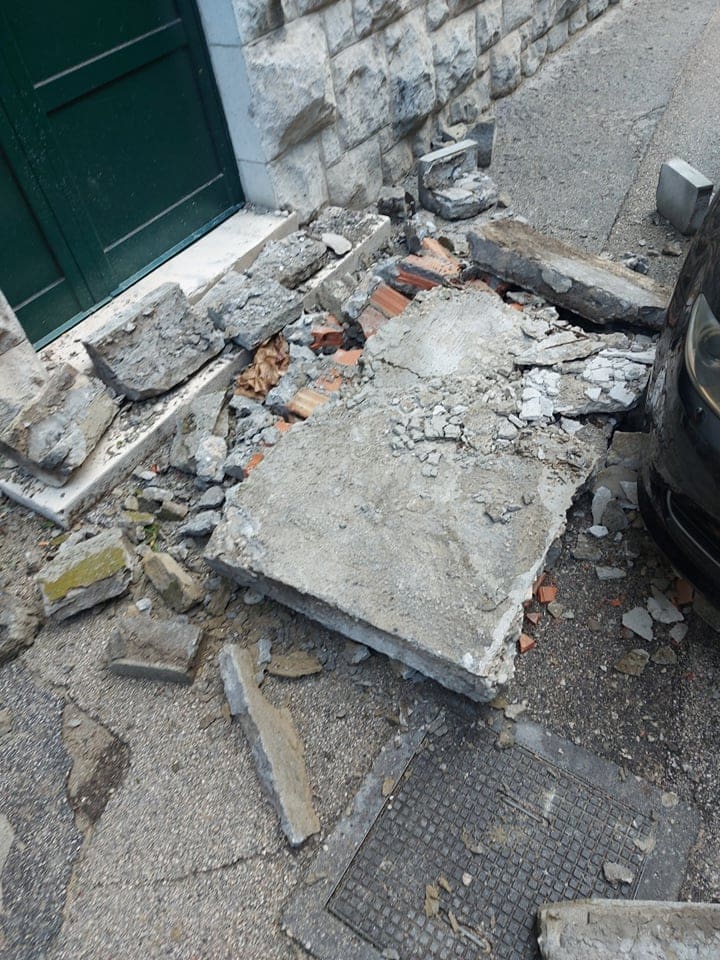 Radi se o zgradi u blizini parka Emanuela Vidovića i samo je srećom izbjegnuta tragedija u nedjelju kasno navečer. Prema informacijama naših čitatelja, vjetar je odlomio i na nogostup pred zgradom bacio veliku kamenu ploču koja se raspršila u dijelove. Ploča je pala kraj jednog automobila koji je tek manje oštećen.