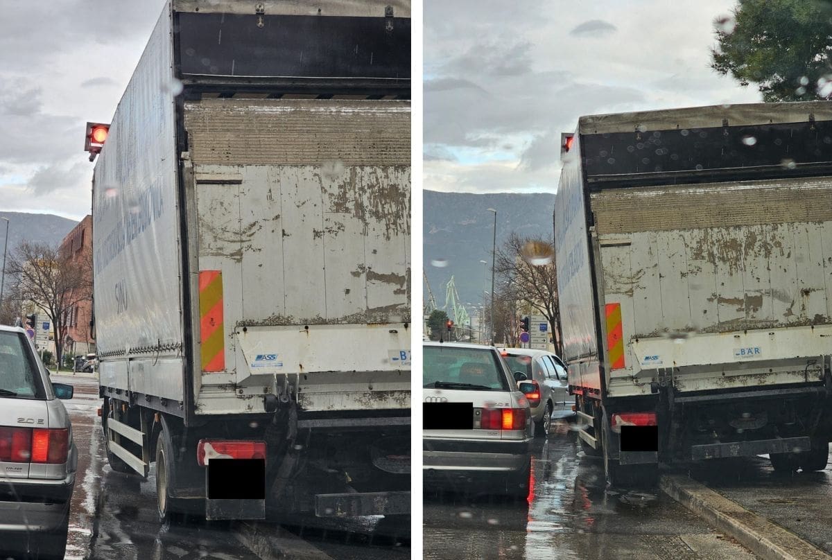 Čitatelj koji nam je poslao fotografije kaže da se ne vidi ni semafor od kamiona, ali ni pješaci koj stoje na pješačkom prijelazu.