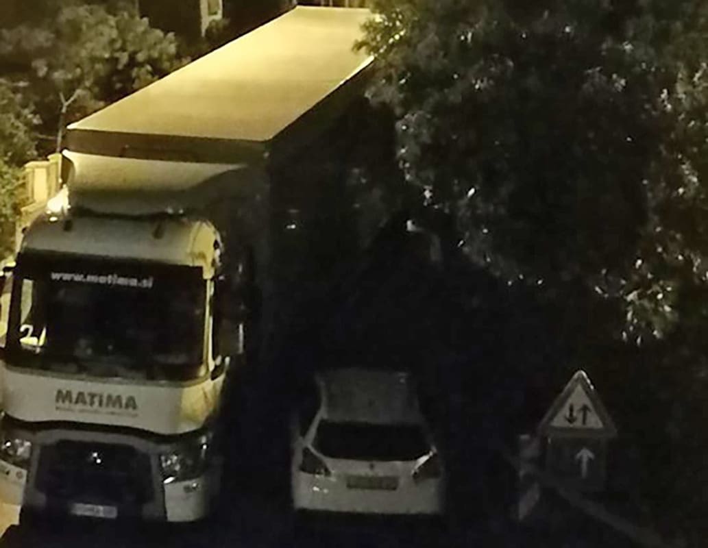 Na Facebook stranici Prometne zgode i nezgode objavljena je fotografija kamiona koji je zapeo na izlazu iz ulice dok je odvozio drvnu masu s Marjana.