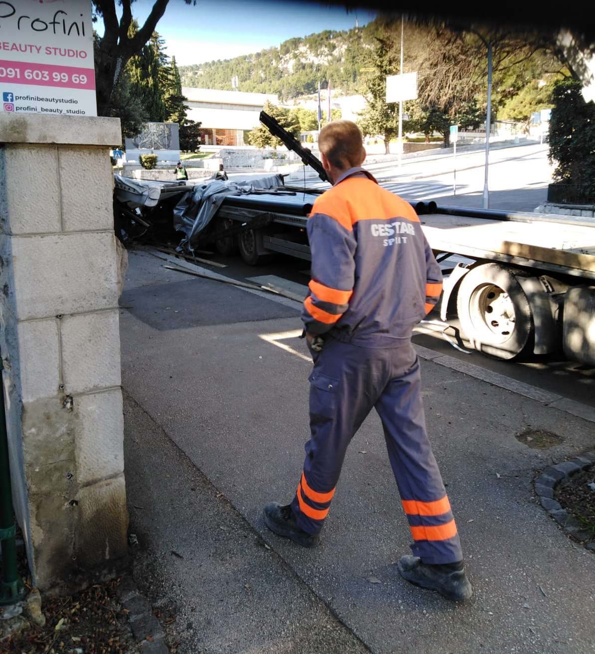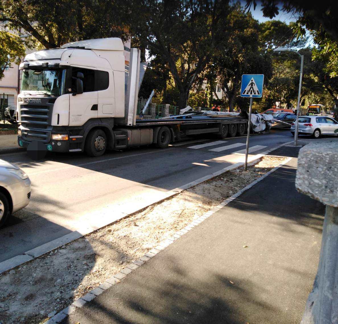 Kako nam je javio čitatelj, oko 13:15 dogodila se nesreća na Mejama u Splitu. Jedan kamion s prikolicom zapeo je za stablo koje se nalazi uz Ulicu Meštrovićevo šetalište. Tom prigodom oštetio je konstrukciju prikolice, odnosno poderao ceradu.