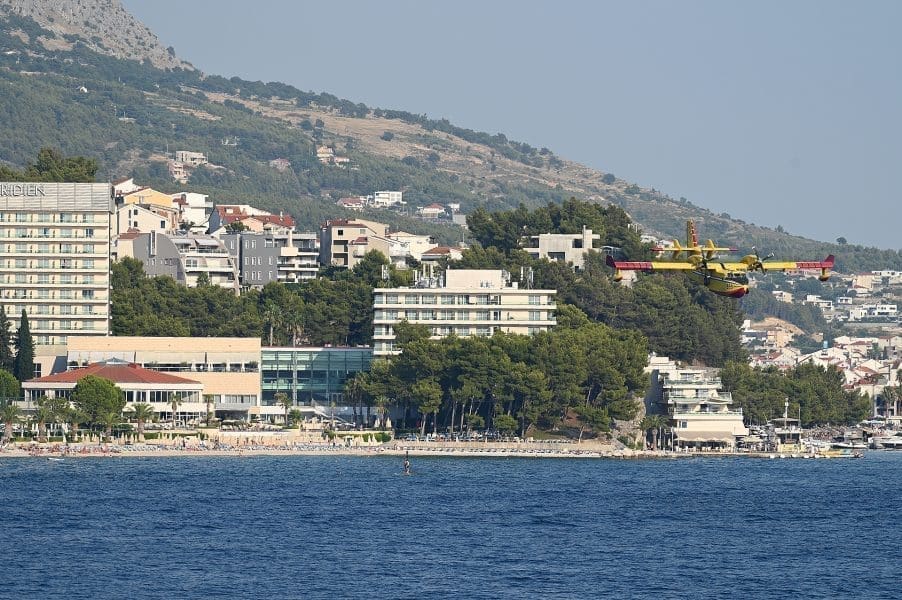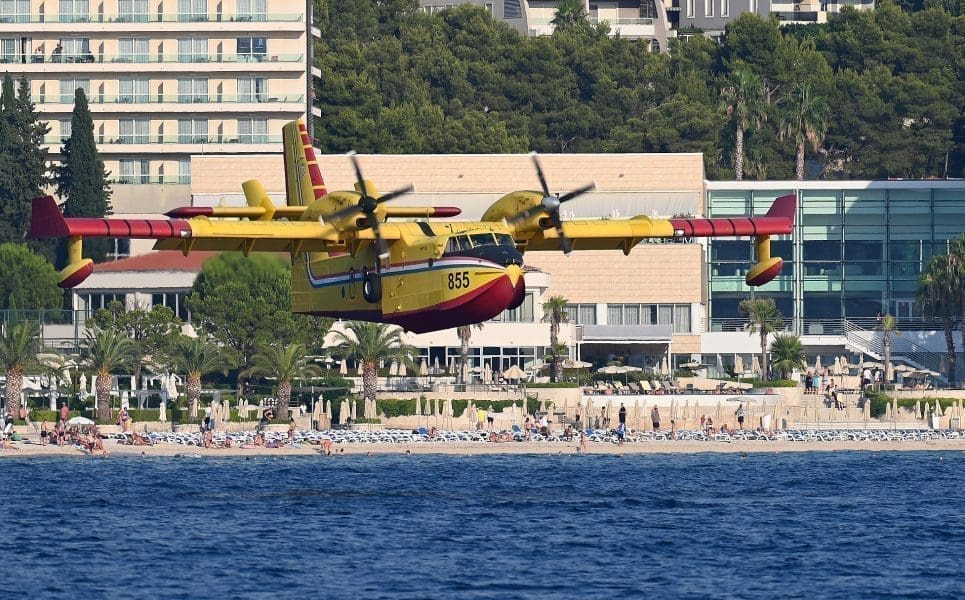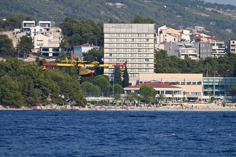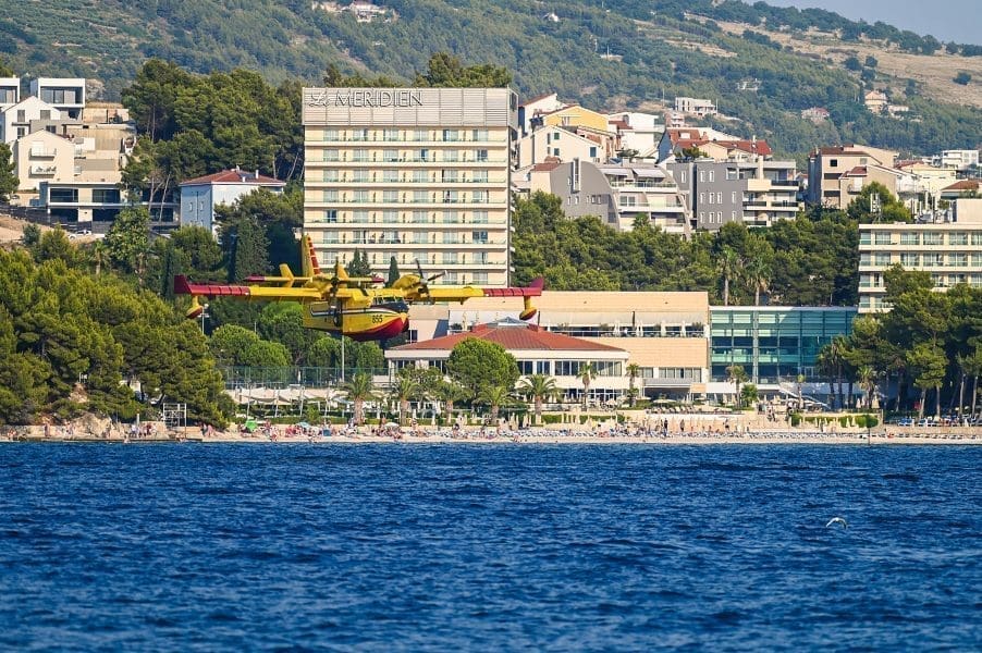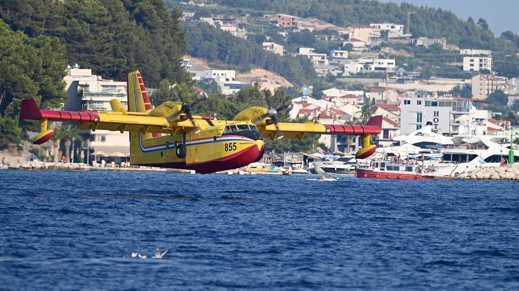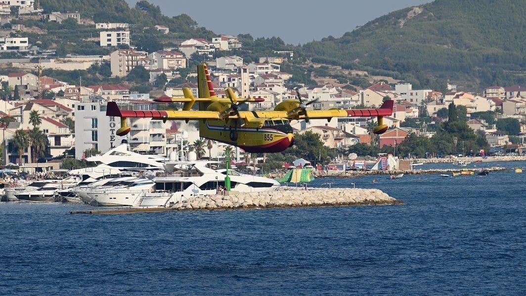 Na oba požarišta bili su aktivni kanaderi, a onaj koji je gasio u Dugopolju, punio se u Stobreču, na iznenađenje brojnih kupača.