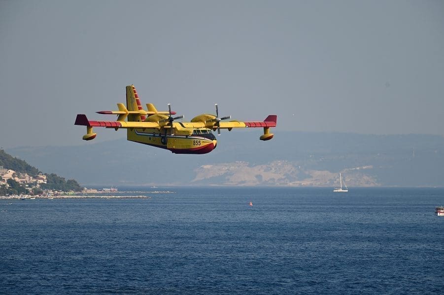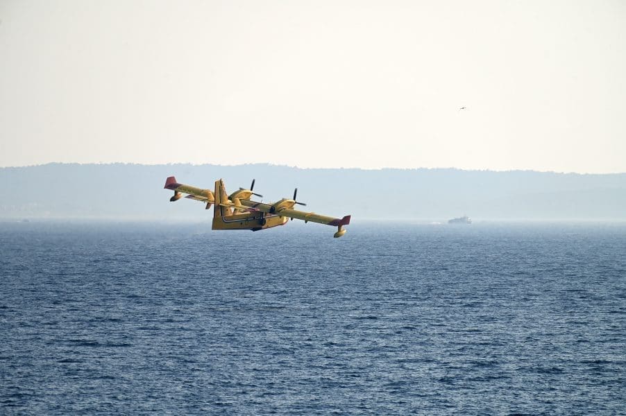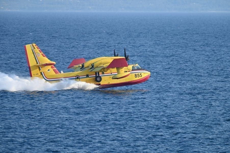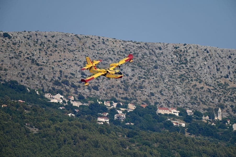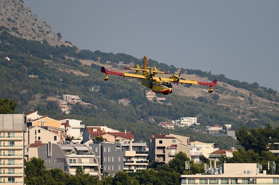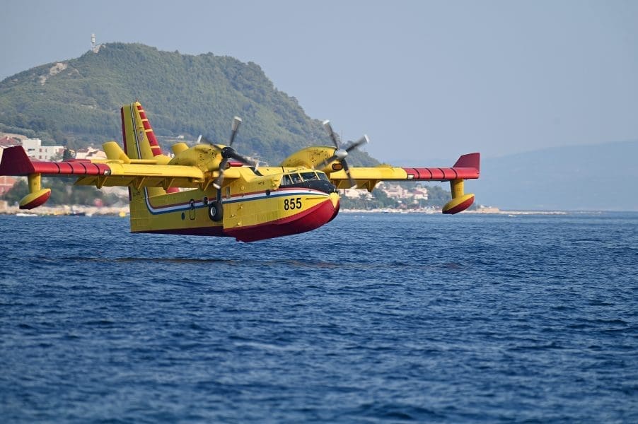 Na oba požarišta bili su aktivni kanaderi, a onaj koji je gasio u Dugopolju, punio se u Stobreču, na iznenađenje brojnih kupača.