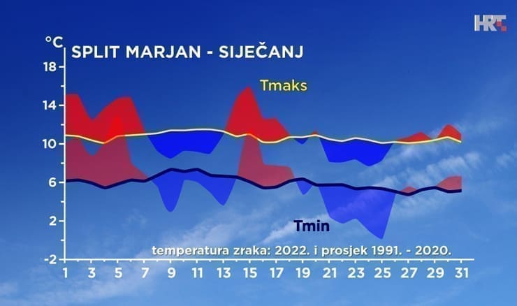 Kao i prosinac - i siječanj je u Hrvatskoj bio barem malo topliji od prosječnoga, ali uz znatno manje oborine. Znatnije promjene gotovo sigurno neće biti ni u bližoj budućnosti, a prema trenutačno važećim prognozama - vjerojatno ni u daljoj. Ali naravno, riječ je o dugoročnijim prognozama koje su manje pouzdane od onih za tjedan dana unaprijed, piše meteorolog Zoran Vakula na internetskim stranicama HRT-a.