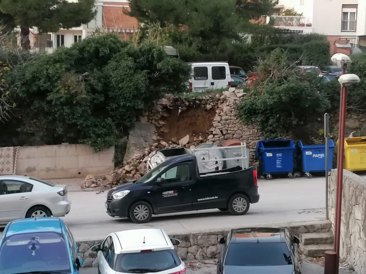 Nevjerojatna scena danas se u poslijepodnevnim satima dogodila na splitskom Trsteniku. Naime, na kolnik gdje se kreću vozila, ali i pješaci odronio se golemi četiri metra visoki kameni zid.