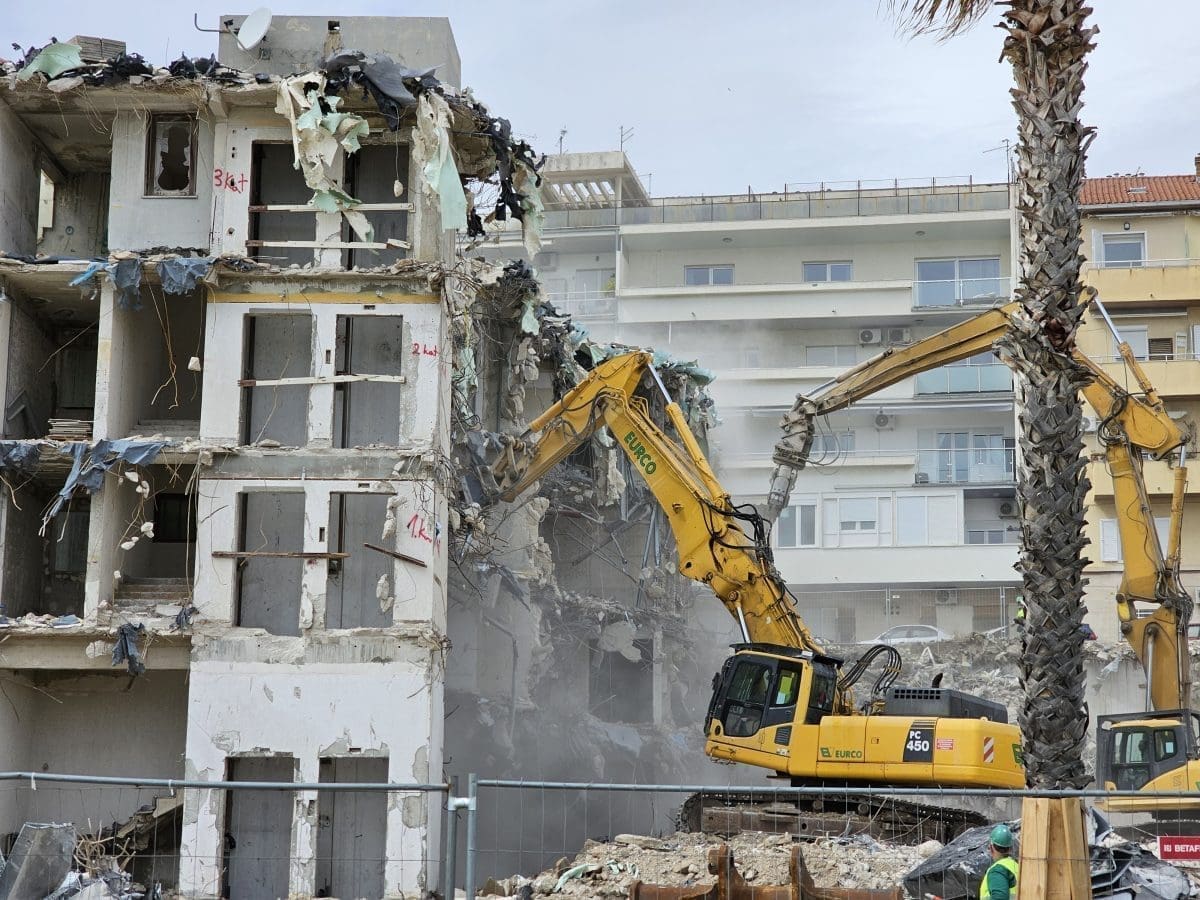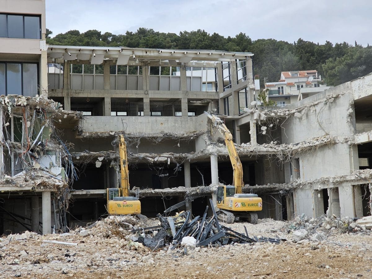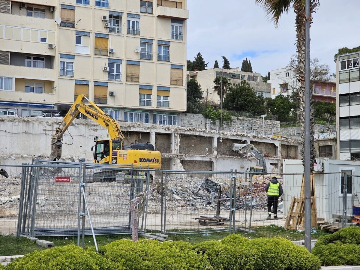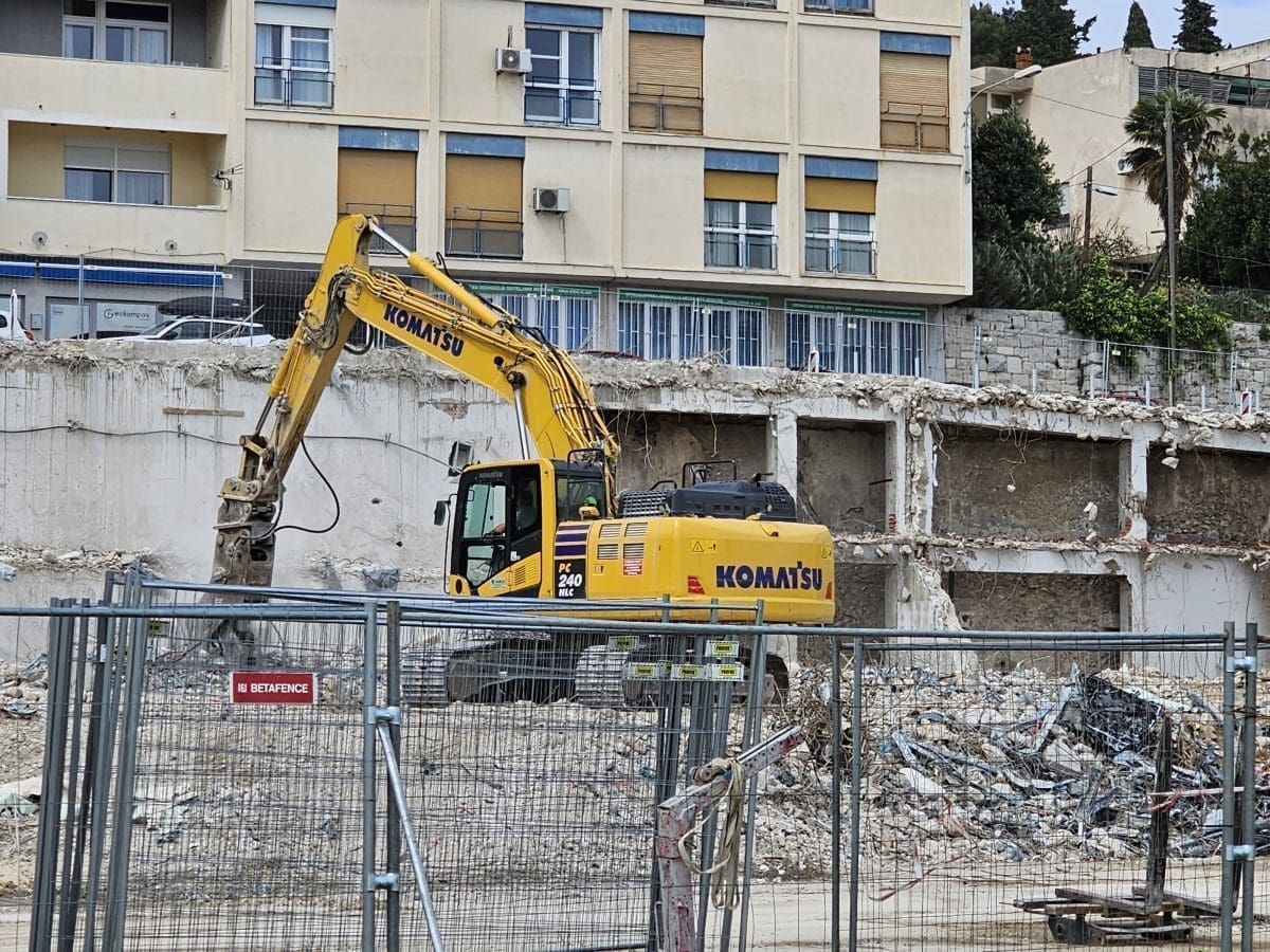 Radi se punom parom na rušenje kultnog splitskog hotela 'Marjan'. Bageri i drugi strojevi ga i ovog vikenda 'gutaju'.