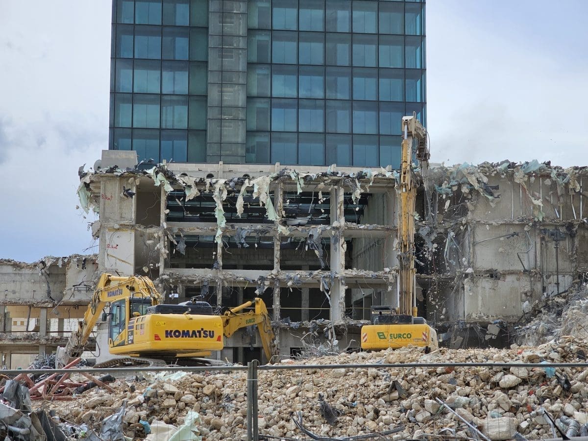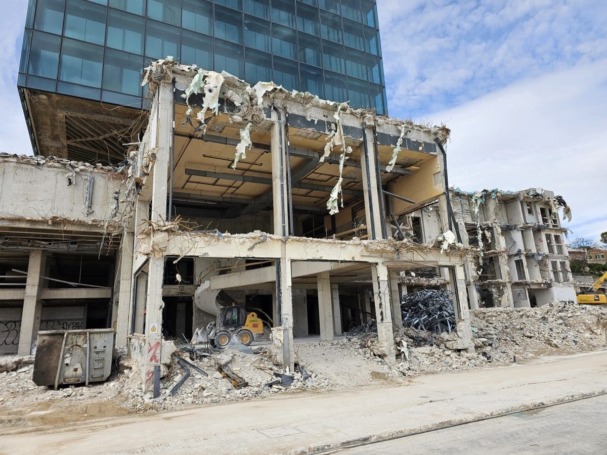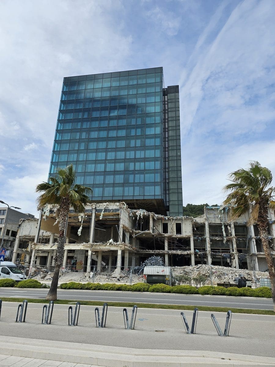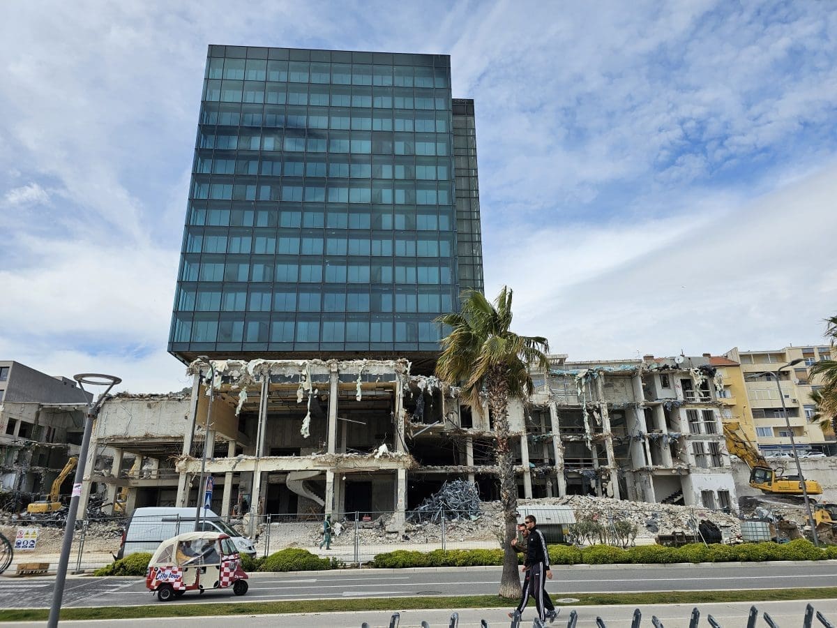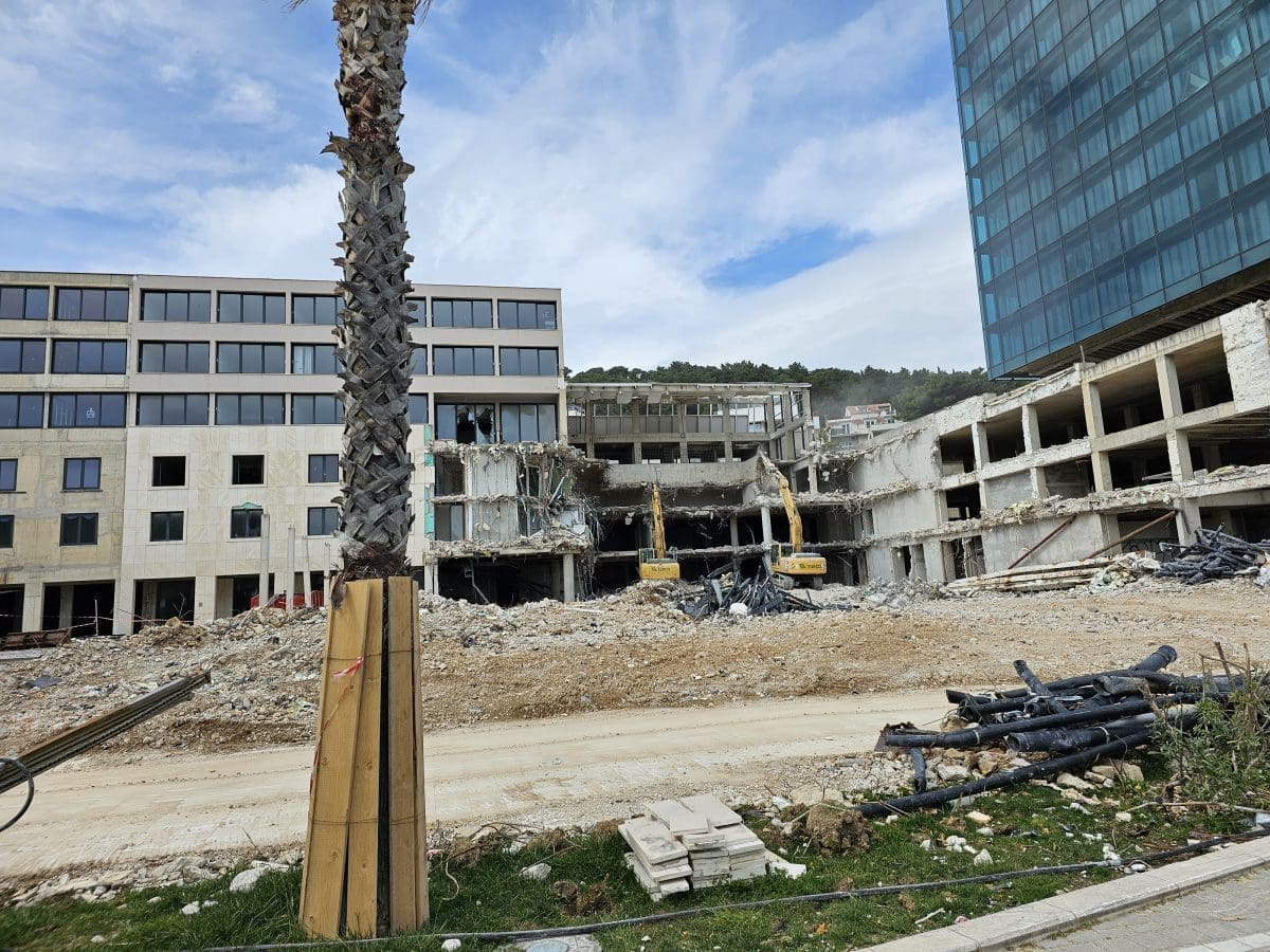 Radi se punom parom na rušenje kultnog splitskog hotela 'Marjan'. Bageri i drugi strojevi ga i ovog vikenda 'gutaju'.